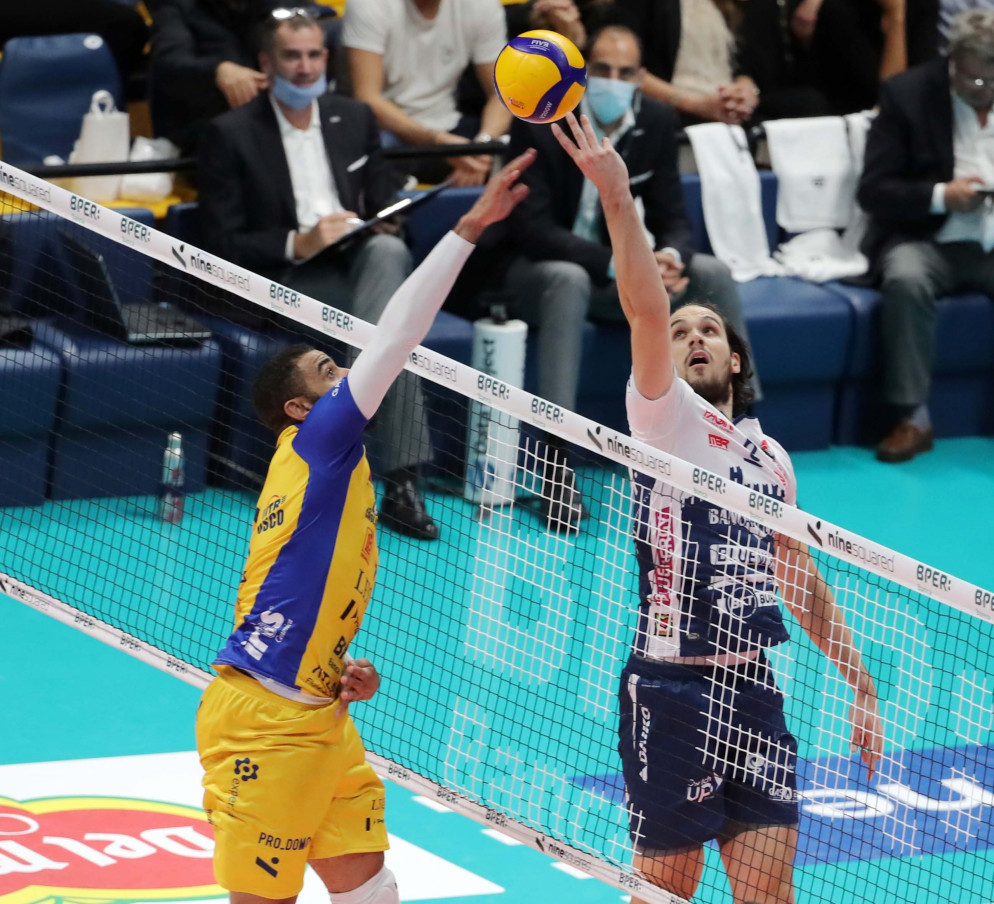 LA CRONACA DELLA PARTITA – Parte fortissimo Piacenza, mettendo subito in difficoltà la ricezione di Modena, sia con il servizio (Rossard semplicemente fantastico) e sull’asse Brizard-Recine e Brizard-Lagumdzija. Quella di coach Giani è però un’autentica corazzata e grazie ai colpi dei martelli Nimir e Ngapeth risponde colpo su colpo. La sfida è combattutissima e molto equilibrata, la differenza la fanno i dettagli e lo strapotere offensivo dei canarini, che nel finale di set piazzano un allungo che Piacenza non riesce più a colmare: il primo round termina 25-20.