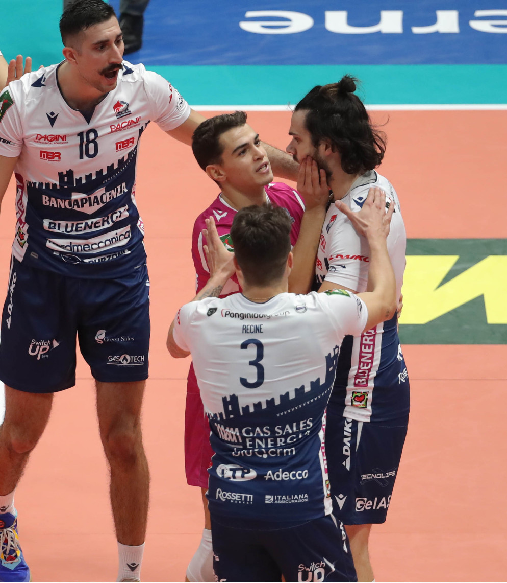Nel quarto set Piacenza domina ma alla fine rischia di perdersi, con Modena che quasi assapora i vantaggi ma alla fine i biancorossi non si disuniscono e chiudono alla grande 23-25.