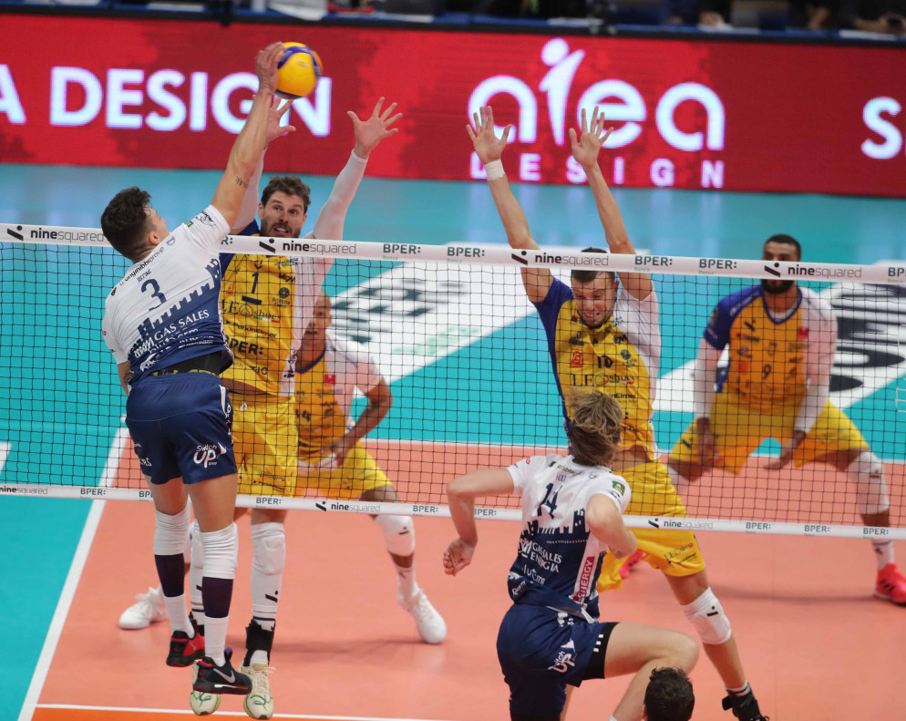 Leo Shoes PerkinElmer Modena: Mossa De Rezende0, Ngapeth E. 22, Sanguinetti 2, Abdel-Aziz 12, Leal9, Mazzone 6, Gollini (L), Stankovic 1, Van Garderen6, Sala 1, Rossini (L). N.E. Ngapeth S., Tauletta, Bellanova. All. Giani.