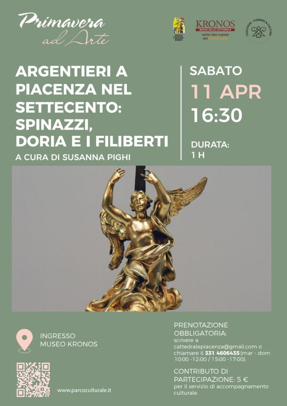 Sabato 11 aprile alle ore 16.30, il Museo Kronos ospita l’incontro "Argentieri a Piacenza nel Settecento: Spinazzi, Doria e i Filiberti", a cura di Susanna Pighi.