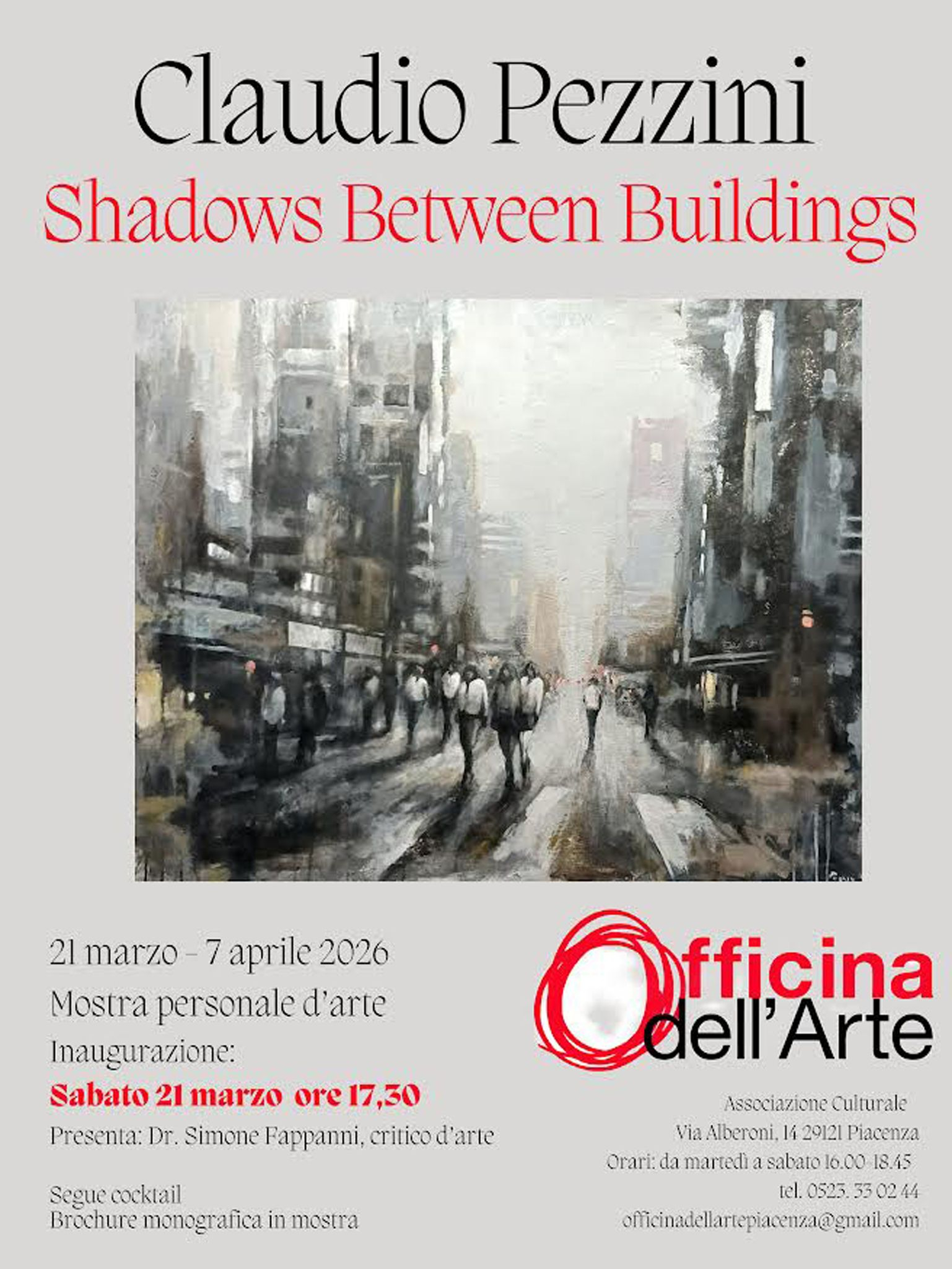 Dal 21 marzo al 7 aprile l’Officina dell’Arte ospita "Shadows Between Buildings", mostra personale del pittore Claudio Pezzini.