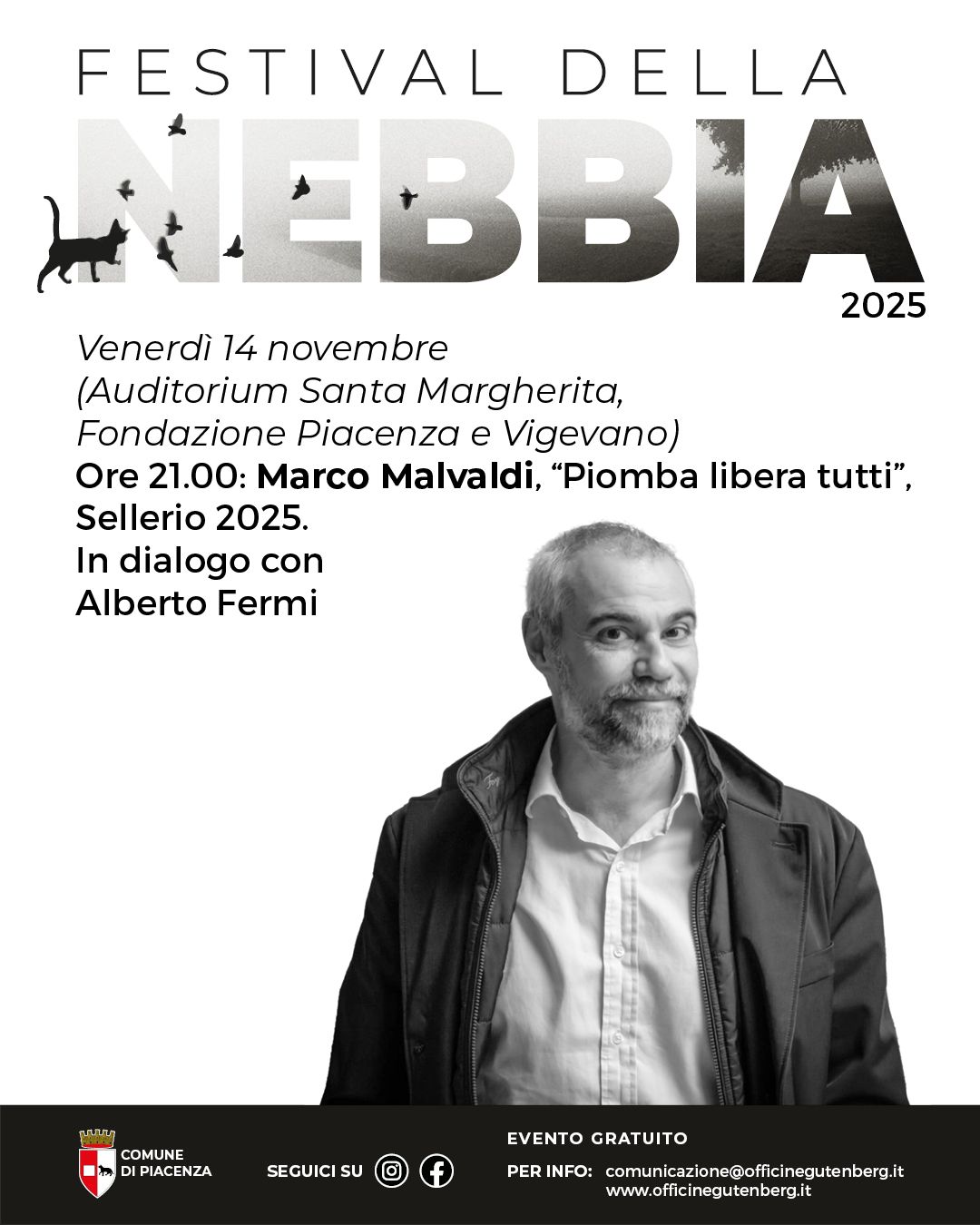 Venerdì 14 novembre, alle ore 21.00, presso l’Auditorium Santa Margherita della Fondazione di Piacenza e Vigevano, appuntamento con Marco Malvaldi, autore del romanzo “Piomba libera tutti” edito da Sellerio (2025).