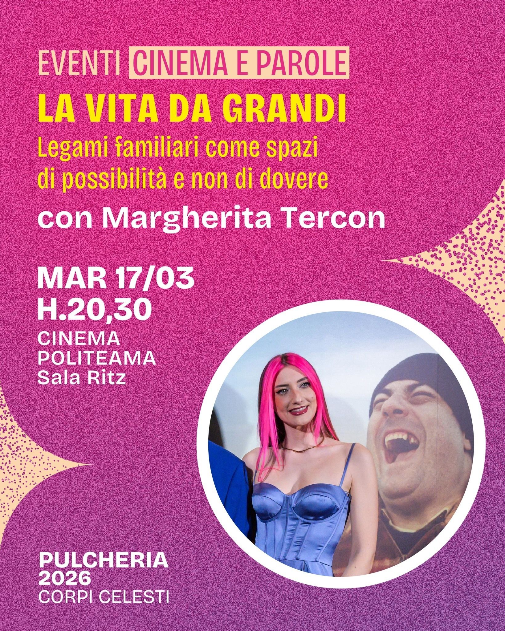 Martedì 17 marzo alle ore 20.30, al Cinema Politeama – Sala Ritz di Piacenza, si apre la rassegna Pulcheria 2026 – Corpi Celesti con l’incontro "La vita da grandi. Legami familiari come spazi di possibilità e non di dovere".