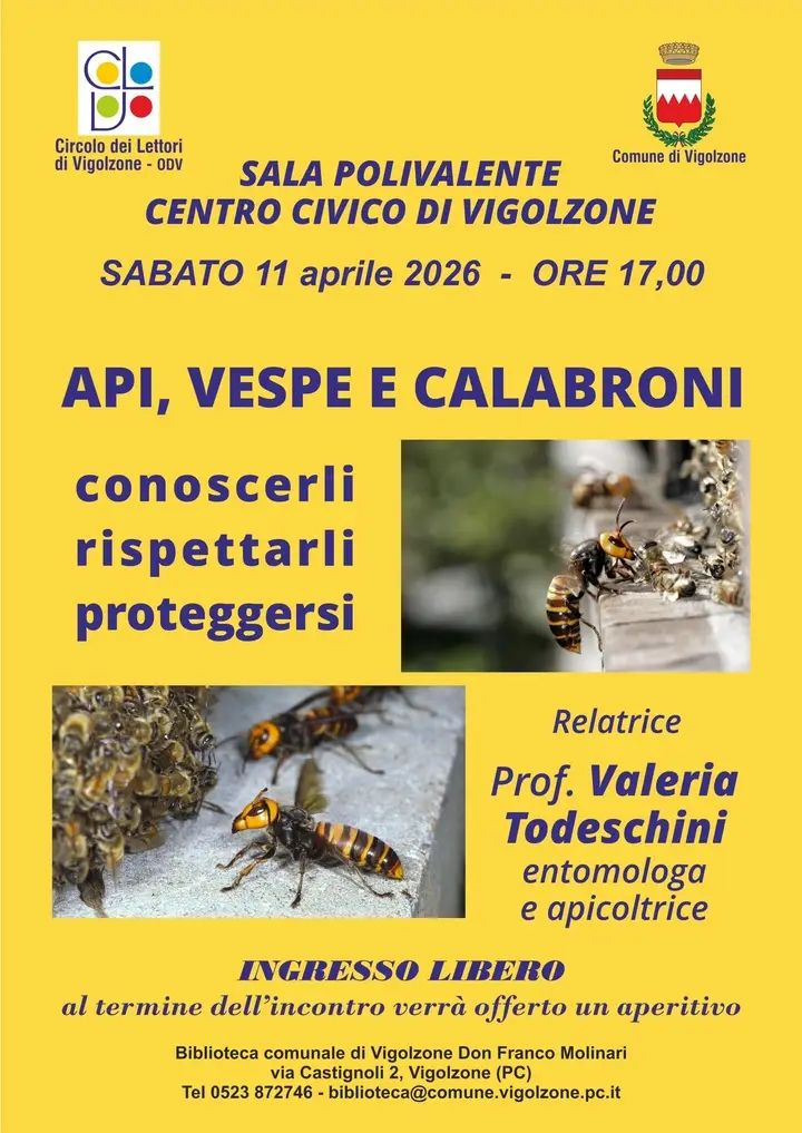 Sabato 11 aprile, alle ore 17.00, la Sala Polivalente del Centro Civico di Vigolzone ospita l’incontro "Api, vespe e calabroni: conoscerli, rispettarli, proteggersi".