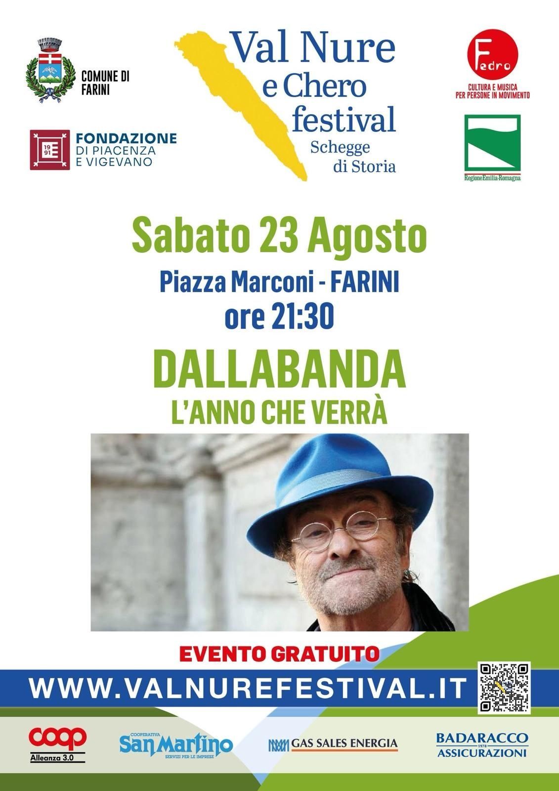 Sabato 23 agosto alle ore 21.30, in Piazza Marconi a Farini, si terrà il concerto della storica band Dallabanda, che interpreterà i brani più belli di Lucio Dalla, nell’ambito del Val Nure Festival.