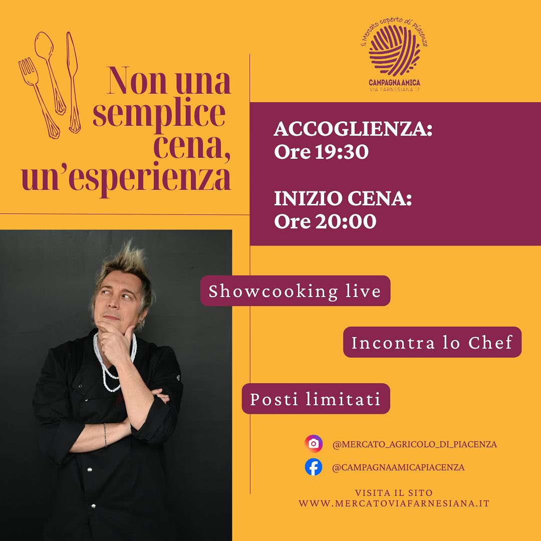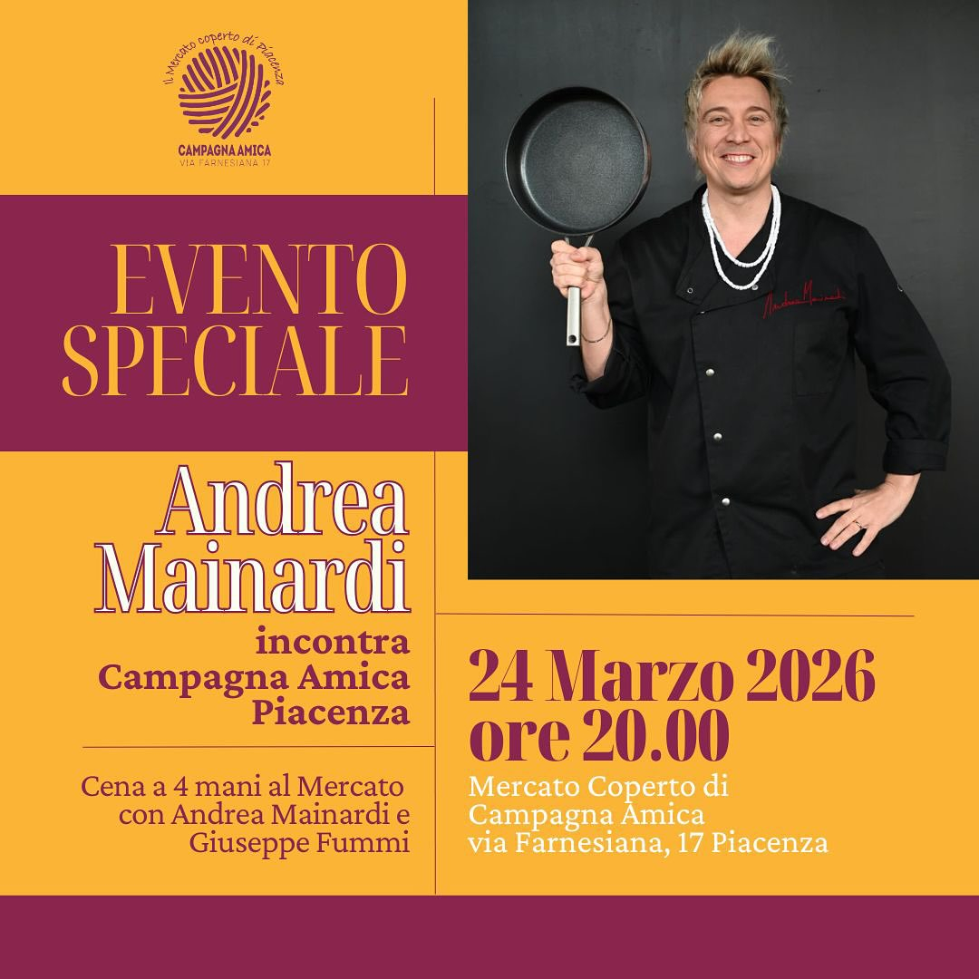 Martedì 24 marzo, dalle ore 19.30, il Mercato Coperto di Campagna Amica Piacenza ospita una serata speciale con lo chef Andrea Mainardi.