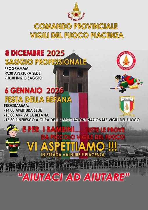 Martedì 6 gennaio, il Comando Provinciale dei Vigili del Fuoco di Piacenza apre le porte della propria sede per celebrare la Festa della Befana, un appuntamento dedicato in particolare alle famiglie e ai più piccoli.