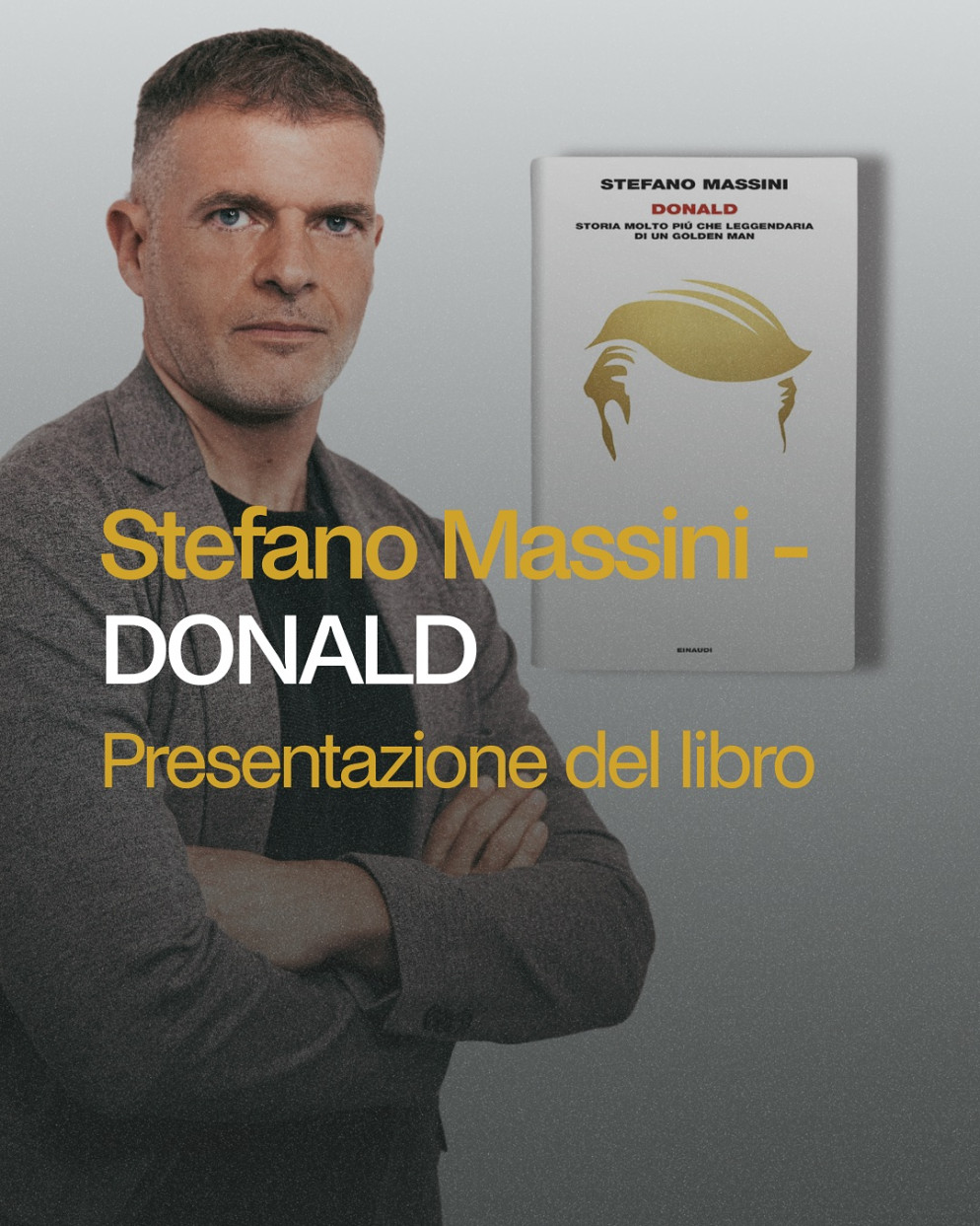 Massini presenterà il suo nuovo libro Donald. Storia molto più che leggendaria di un Golden Man (Einaudi, 2025), un racconto potente, ironico e graffiante sull’ascesa di Donald J. Trump.