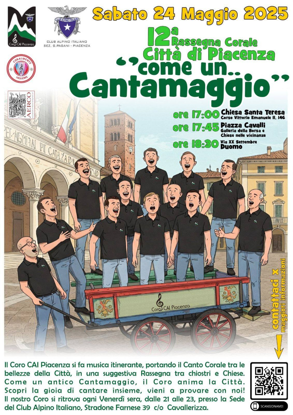 Sabato 24 maggio si terrà a Piacenza la dodicesima edizione della Rassegna Corale “Città di Piacenza - Come un... Cantamaggio”, promossa dal Coro CAI Piacenza.