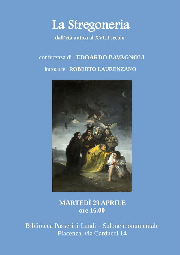 Il secondo incontro è in programma 29 aprile alle ore 16.00 e sarà dedicato al tema “La stregoneria dall'antichità al XVII secolo”.