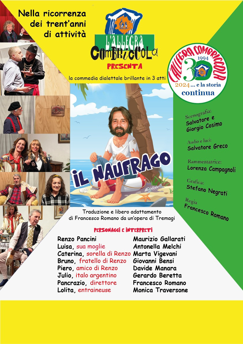 Sabato 26 aprile alle ore 21.00, presso il salone parrocchiale di Niviano, andrà in scena lo spettacolo "Il naufrago", commedia dialettale in tre atti proposta dalla Compagnia Teatrale L’Allegra Combriccola di Borgonovo.