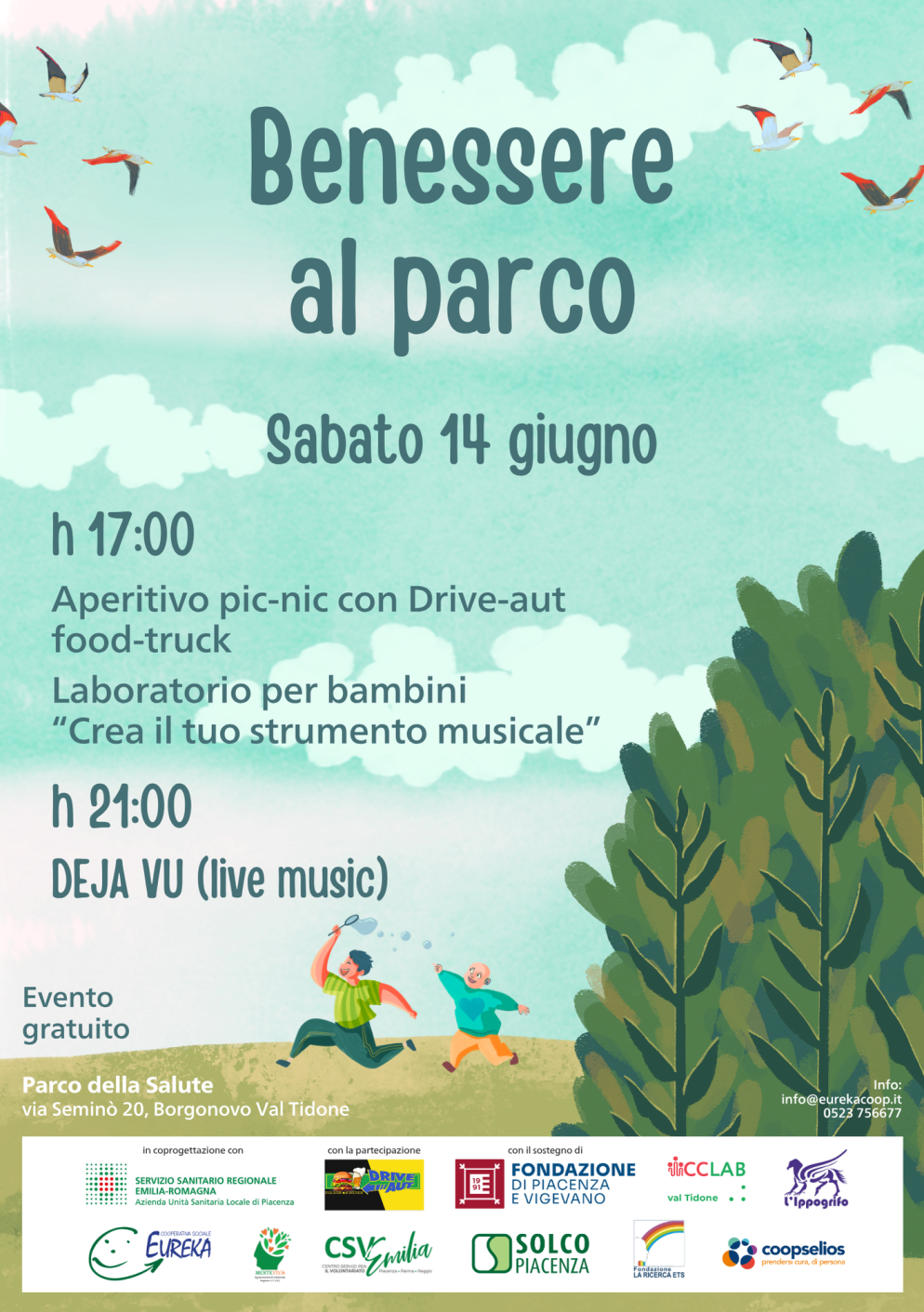 Sabato 14 giugno, a partire dalle ore 17.00, presso il Parco della Salute di Borgonovo Val Tidone (via Seminò 20), si terrà l’evento “Benessere al Parco”, promosso dalla Casa della Comunità di Borgonovo.