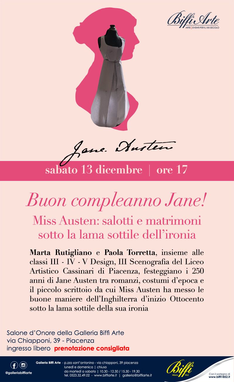 Sabato 13 dicembre, alle ore 17.00, il Salone d’Onore della Galleria Biffi Arte ospita un appuntamento speciale dedicato ai 250 anni dalla nascita di Jane Austen, tra le autrici più amate della letteratura inglese.
