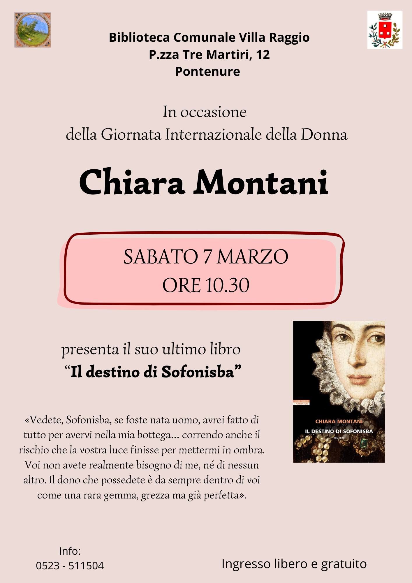 Sabato 7 marzo alle ore 10.30, alla Biblioteca Comunale Villa Raggio di Pontenure, Chiara Montani presenta il suo ultimo libro "Il destino di Sofonisba", in occasione della Giornata Internazionale della Donna.