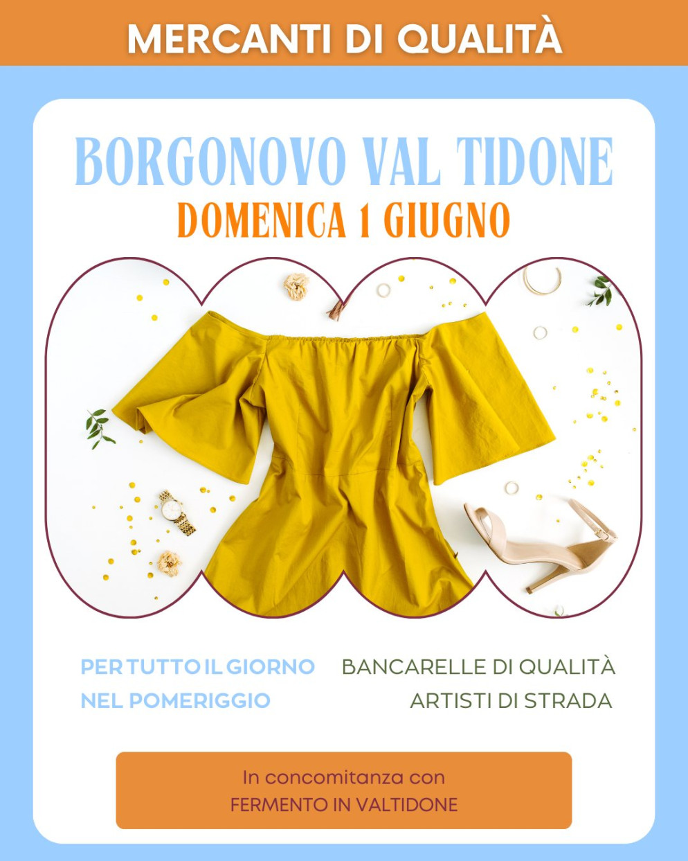 Domenica 1° giugno le bancarelle dei Mercanti di Qualità arrivano a Borgonovo Val Tidone, per una giornata dedicata al divertimento e allo shopping all’aria aperta, tra proposte originali, idee regalo e prodotti unici.