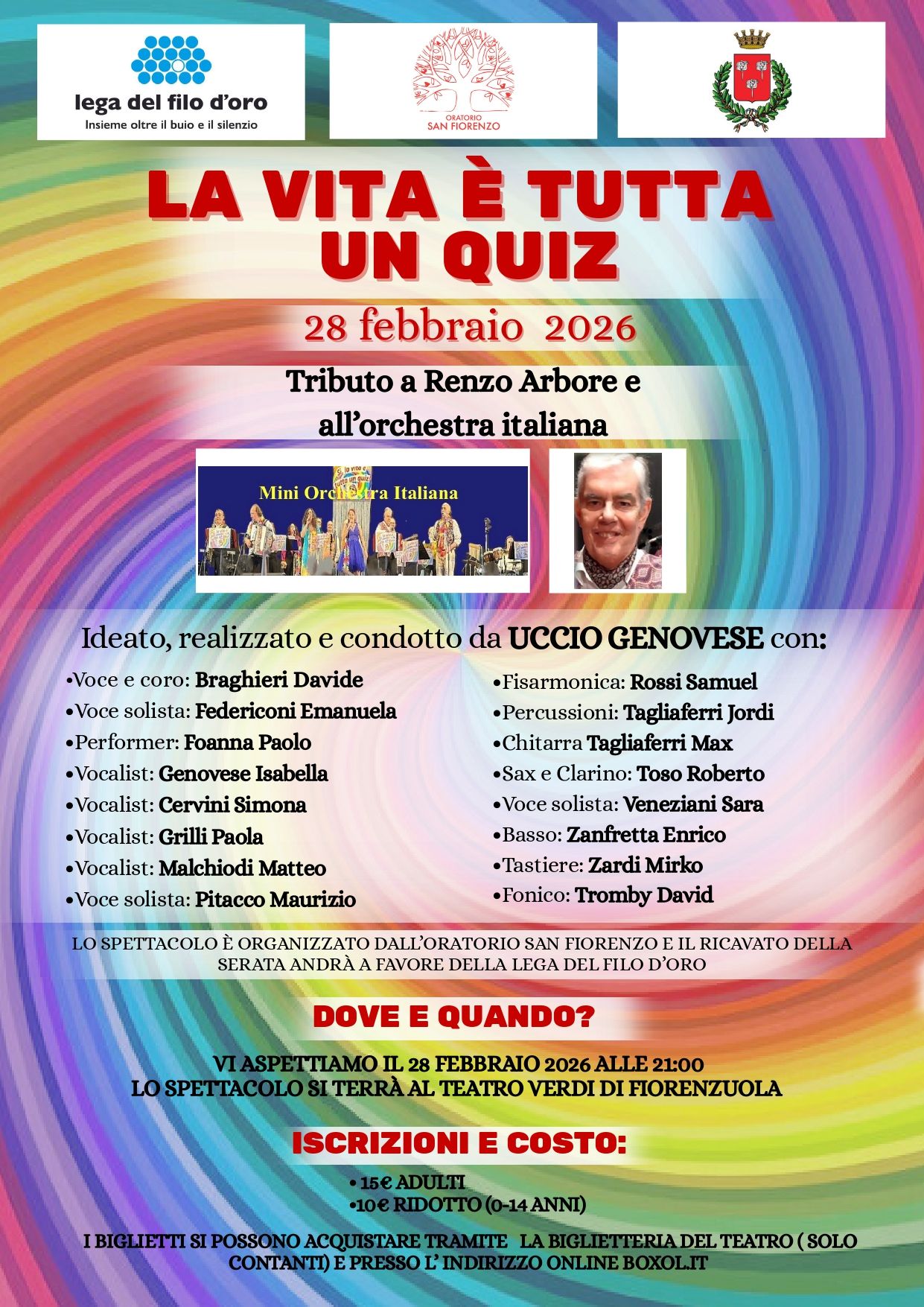 Sabato 28 febbraio alle ore 21.00, il Teatro Verdi di Fiorenzuola ospita "La vita è tutta un quiz", spettacolo musicale dedicato a Renzo Arbore e alla sua celebre Orchestra Italiana.