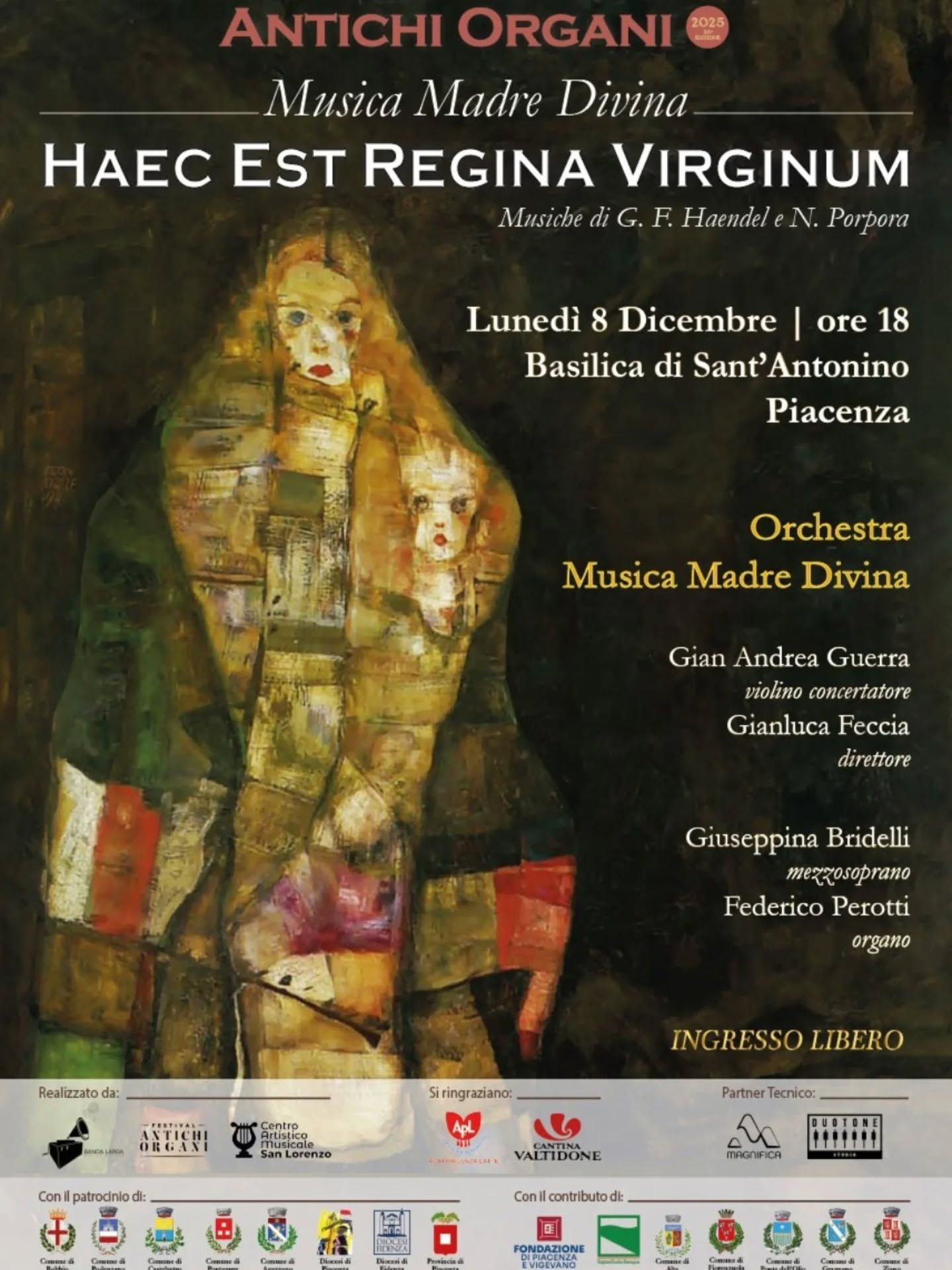 La 38ª edizione della rassegna “Antichi Organi. Un Patrimonio da salvare” si conclude con un prestigioso concerto fuori programma “Haec est Regina Virginum”, in programma lunedì 8 dicembre 2025 alle ore 18.00 nella Basilica di Sant’Antonino a Piacenza.