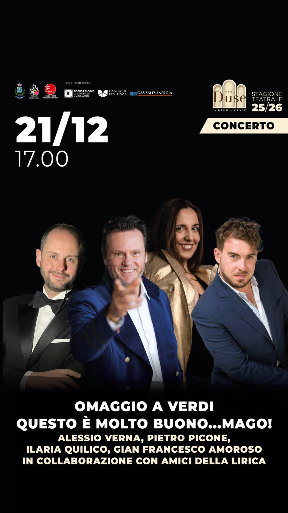 Domenica 21 dicembre, alle ore 17.00, nell’ambito della Stagione Teatrale 2025/2026 del Teatro Eleonora Duse di Cortemaggiore, andrà in scenaQuesto è molto buono… mago!, un vero e proprio concerto-spettacolo che invita il pubblico a entrare nella magica atmosfera del Natale a Casa Verdi.