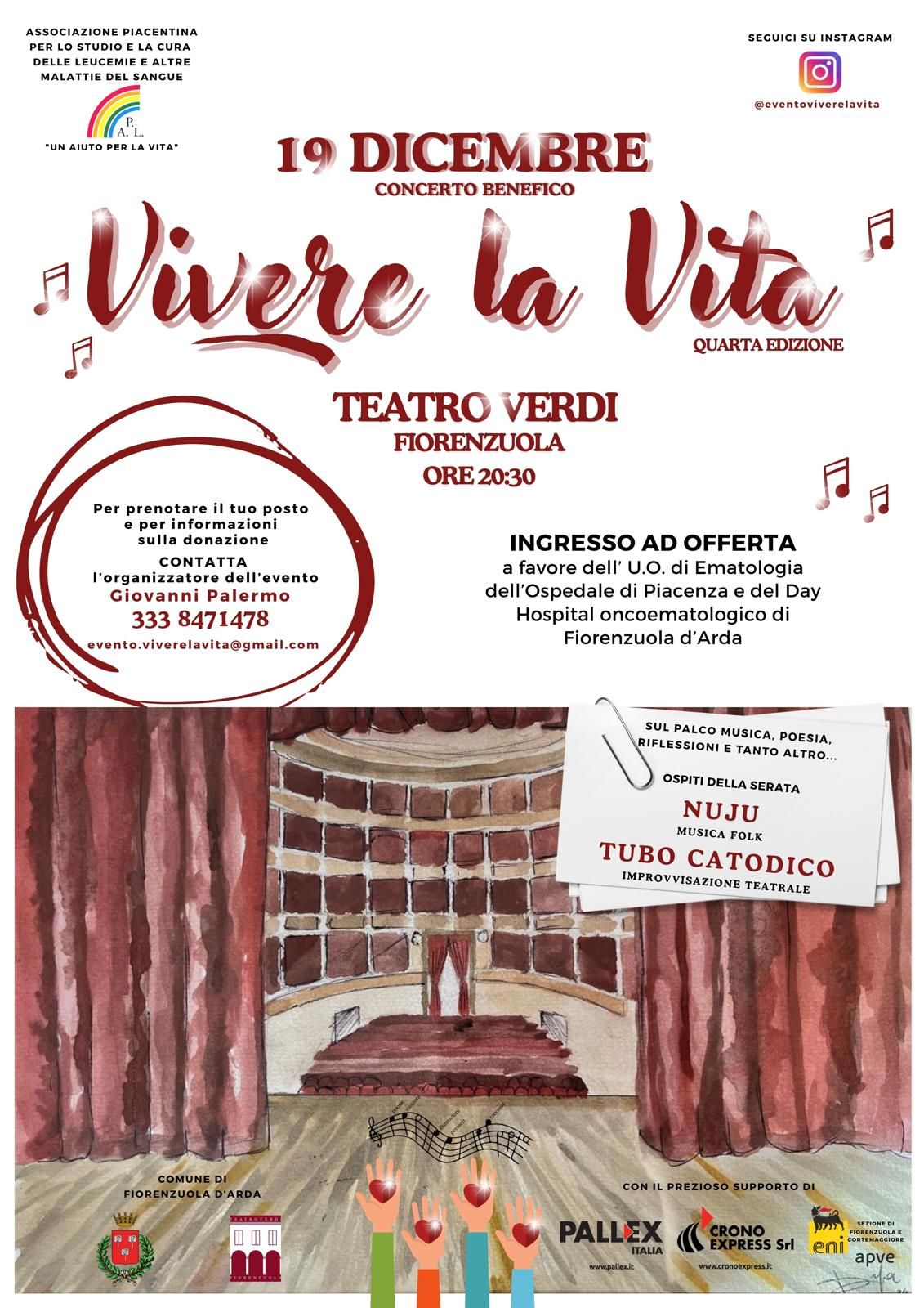 Venerdì 19 dicembre, alle ore 20.30, il Teatro Verdi di Fiorenzuola d’Arda ospita la quarta edizione di “Vivere la vita”, concerto benefico che unisce musica, riflessione e solidarietà.