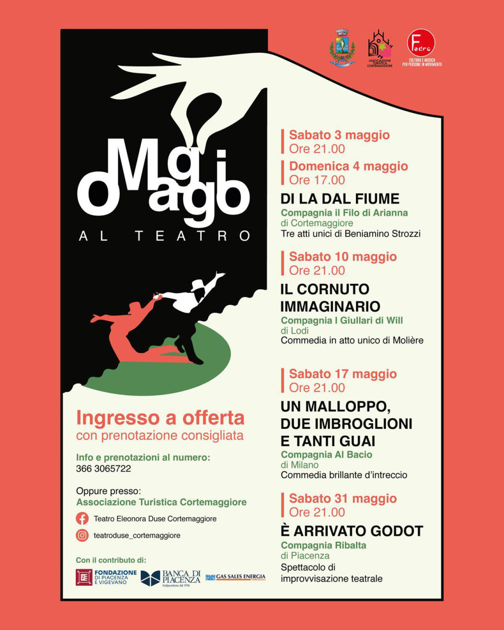 L’appuntamento rientra nella seconda edizione di “oMaggio al teatro”, la rassegna dedicata alle compagnie amatoriali - locali e non - che porteranno sul palco, per tutti i fine settimana di maggio, un vivace intreccio di classici, commedie e improvvisazioni.