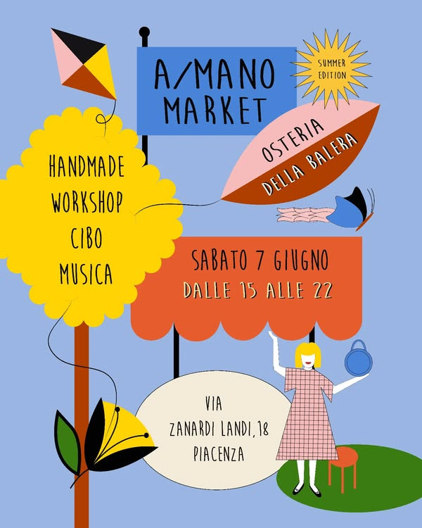 Sabato 7 giugno, sul prato dell’Osteria della Balera in via Legione Zanardi Landi 18, torna l’atteso appuntamento estivo con A/mano Market.