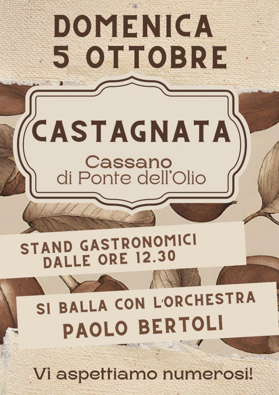 Domenica 5 ottobre, Cassano di Ponte dell’Olio si anima con la tradizionale Castagnata, una festa all’insegna di sapori, musica e tradizione!