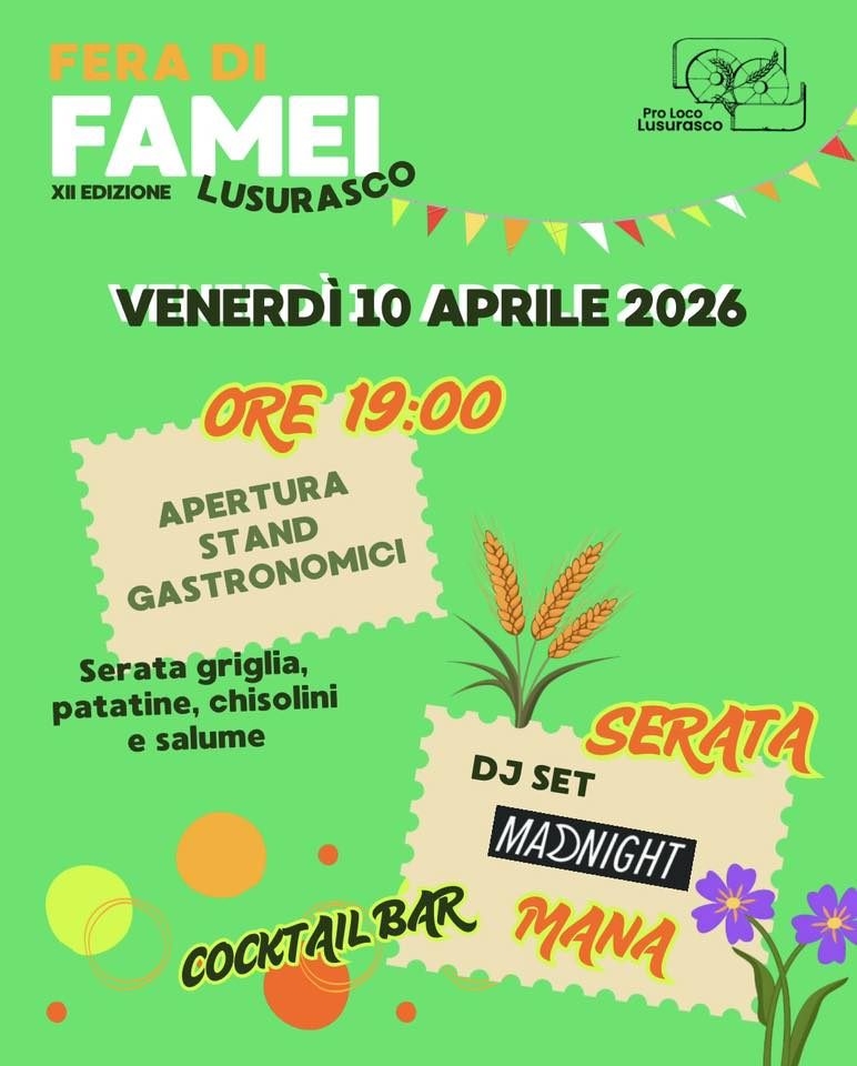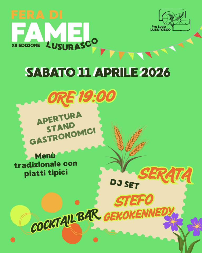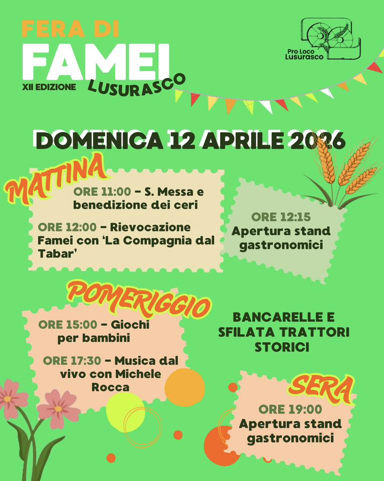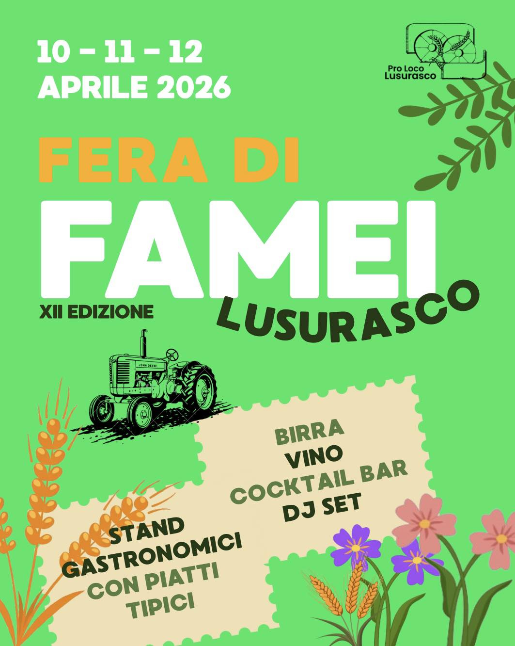 Da venerdì 10 a domenica 12 aprile, a Lusurasco, frazione di Alseno, torna la 12ª edizione della Fera di Famei, appuntamento che rievoca una tradizione popolare del territorio.