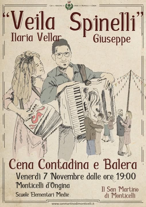 - Ore 19.00 – Cena contadina e balera con Giuseppe Spinelli e Veila, duo di fisarmoniche