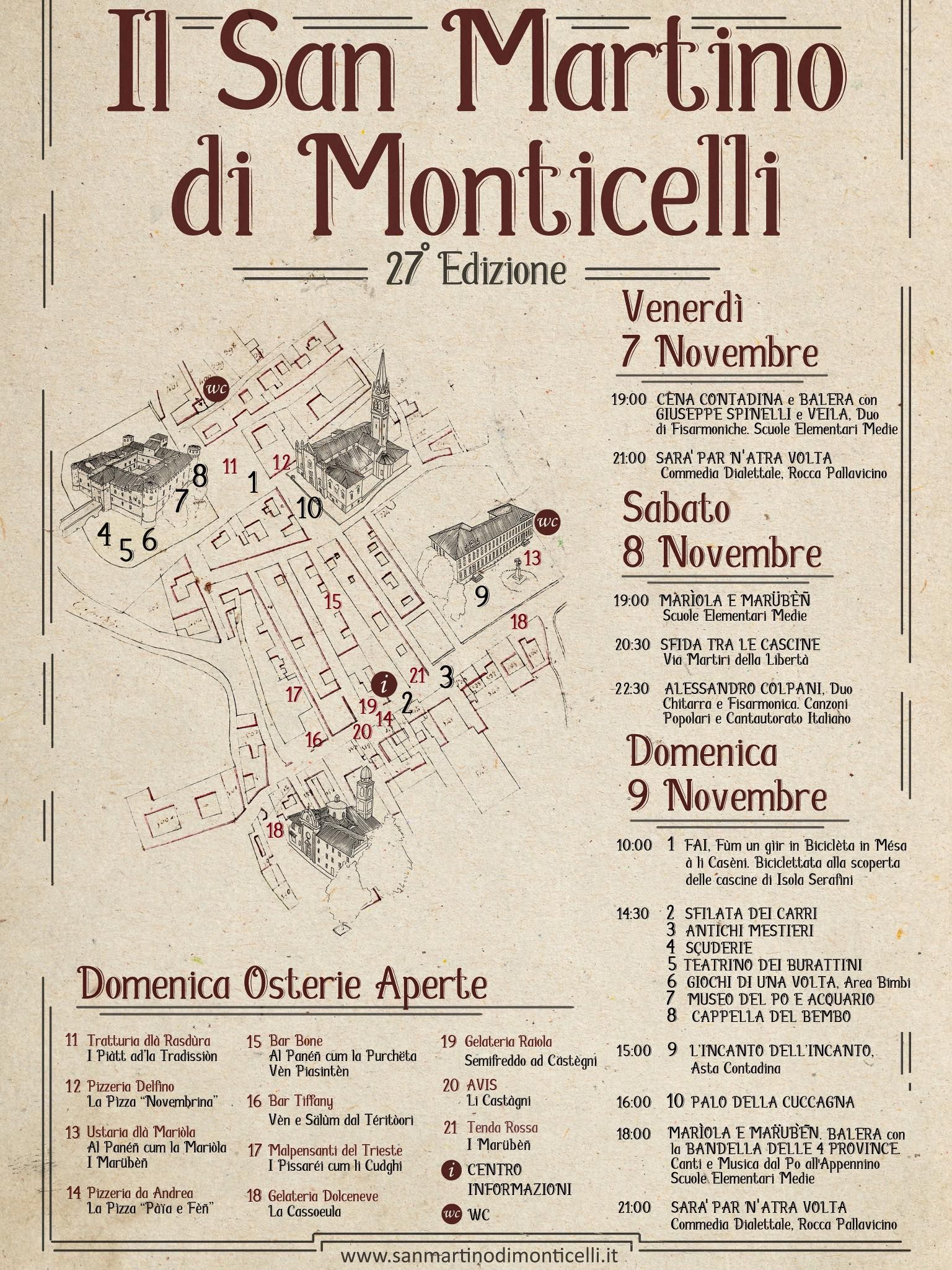Da venerdì 8 a domenica 9 novembre, a Monticelli d’Ongina torna la 27ª edizione del San Martino, una delle rievocazioni più amate del territorio piacentino, che ogni anno riporta in vita le tradizioni contadine dei primi del Novecento.