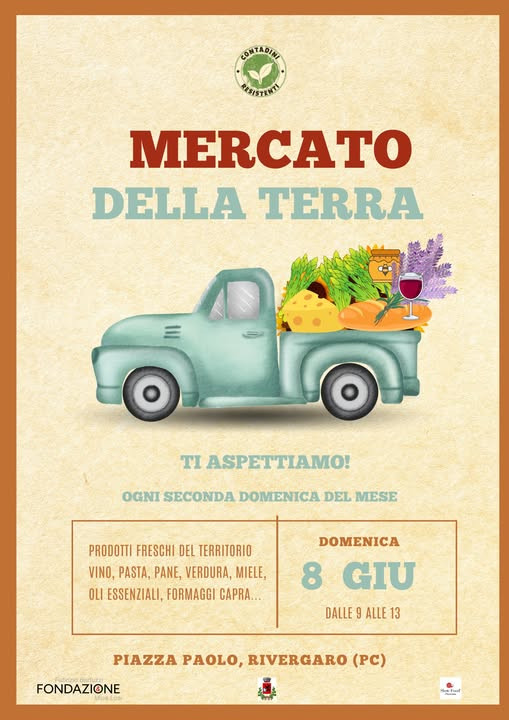 Ogni seconda domenica del mese, il Mercato della Terra arriva in Piazza Paolo Araldi a Rivergaro grazie ai Contadini Resistenti, un’associazione di piccoli produttori impegnati in un’agricoltura sostenibile, attenta alla stagionalità e alla qualità.