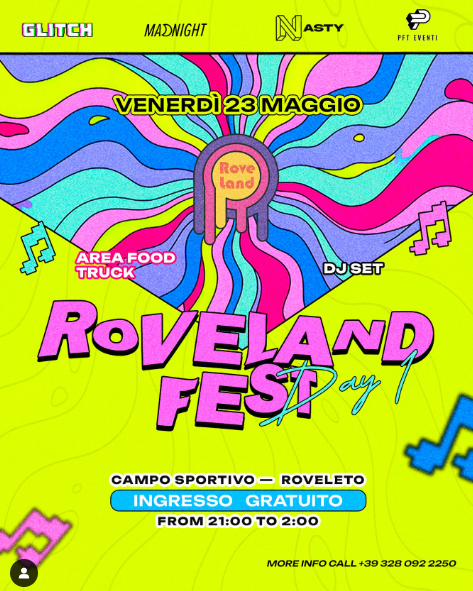 Venerdì 23 e sabato 24 maggio, presso il campo sportivo di Roveleto, si terrà la prima edizione di Roveland Fest: due giorni all’insegna del divertimento, con dj set, area food, birra e cocktail.