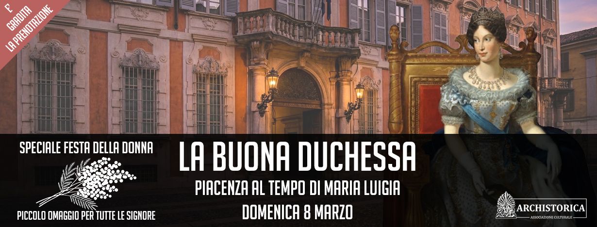 Domenica 8 marzo, con ritrovo alle ore 14.30 in Piazza Sant’Antonino a Piacenza (partenza ore 15.00), Archistorica propone la camminata culturale "La Buona Duchessa. Piacenza al tempo di Maria Luigia".