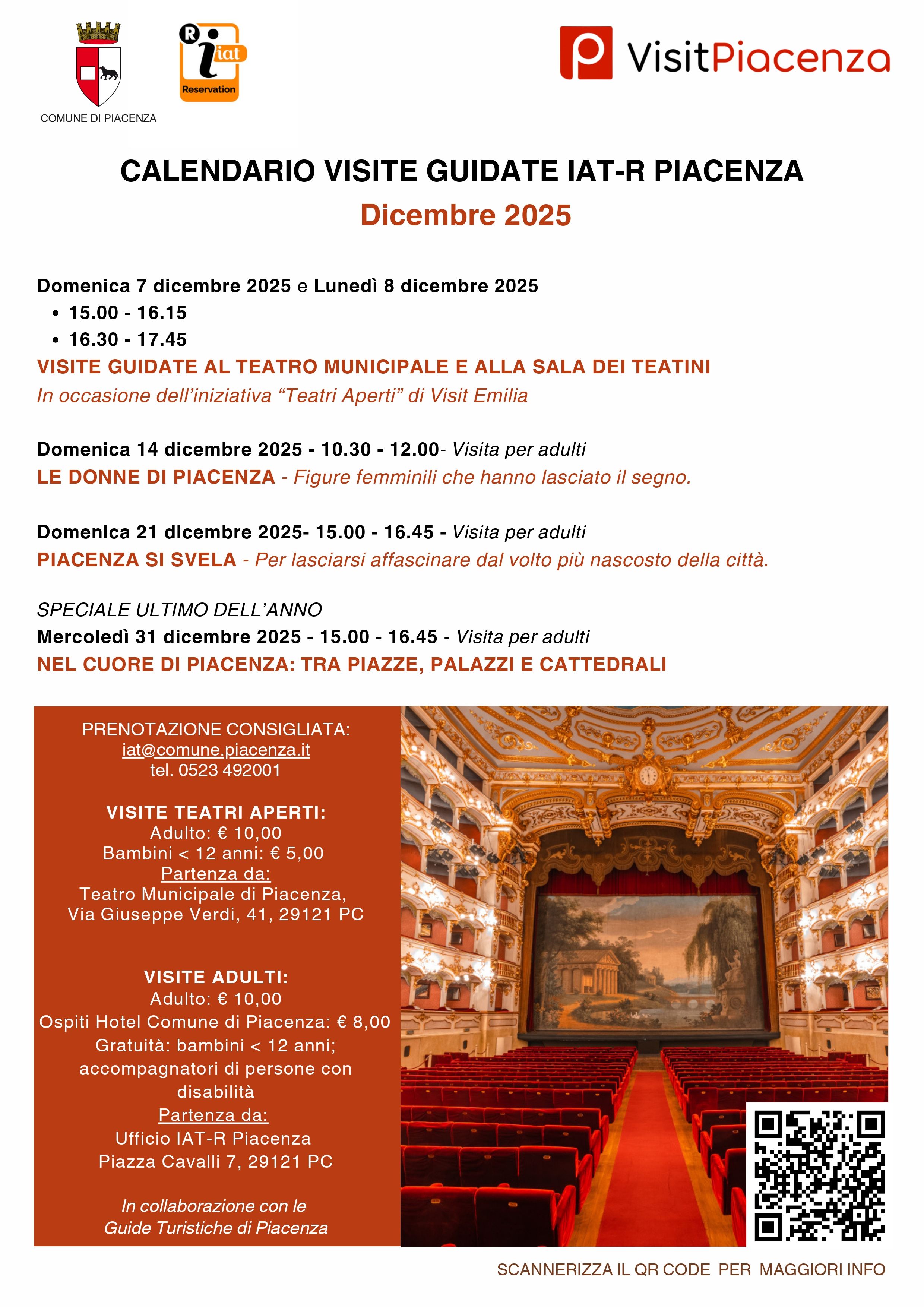 Domenica 21 dicembre, dalle 15.00 alle 16.45, è in programma la visita guidata “Piacenza si svela”, un itinerario dedicato agli adulti per esplorare il cuore del centro storico e scoprirne angoli noti e sorprendenti.