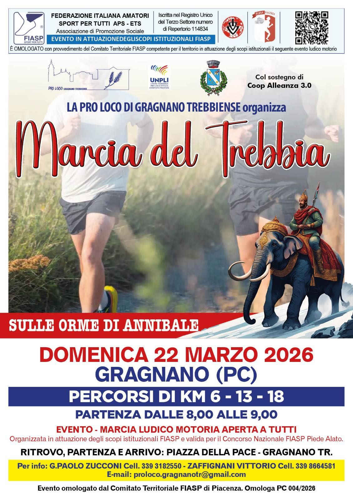 Domenica 22 marzo, a Gragnano Trebbiense, si terrà la Marcia del Trebbia sulle orme di Annibale, manifestazione non competitiva a passo libero aperta a tutti e organizzata dalla Pro Loco di Gragnano.