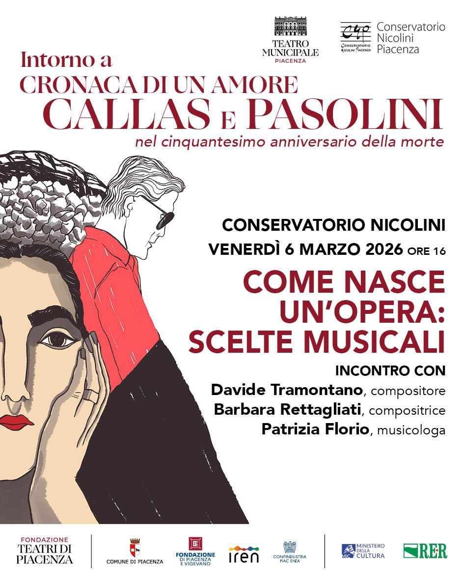 Ad accompagnare l’attesa del debutto, dal 28 febbraio è previsto un ciclo di incontri di approfondimento che indaga le figure di Pasolini e Callas da prospettive storiche, artistiche e musicali. L’iniziativa è realizzata in collaborazione con gli Amici della Lirica di Piacenza e il Conservatorio Nicolini.