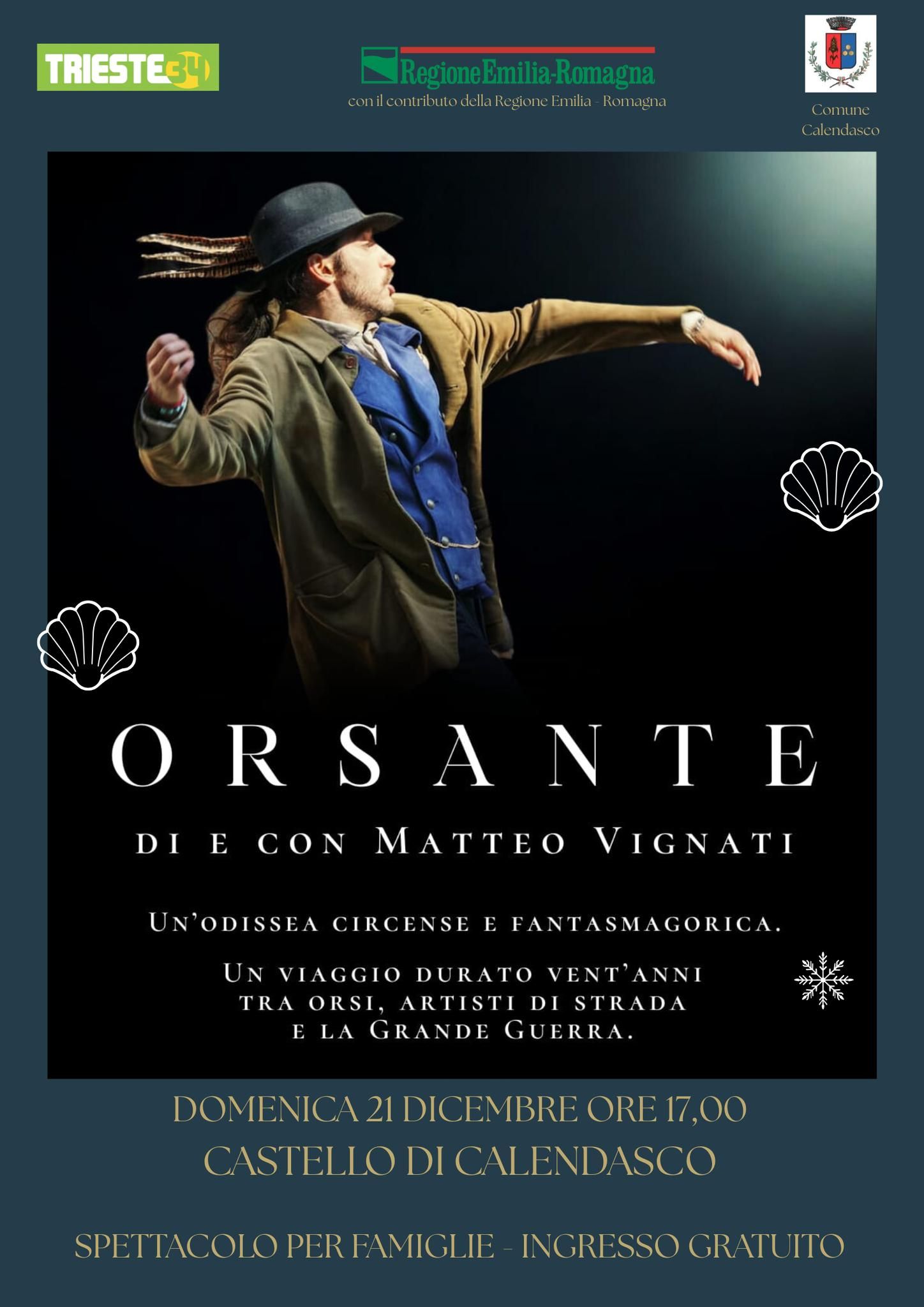Domenica 21 dicembre, alle ore 17.00, il Castello di Calendasco ospita Orsante, monologo di narrazione scritto e interpretato da Matteo Vignati.