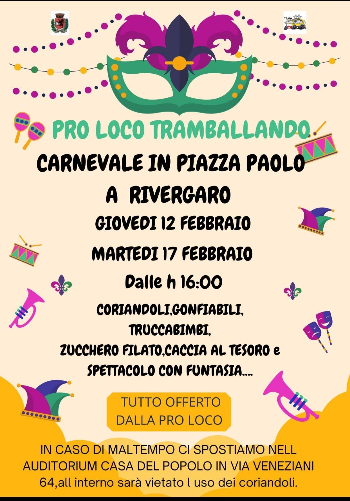 Giovedì 12 febbraio torna il Carnevale in Piazza Paolo a Rivergaro, organizzato dalla Pro Loco Tramballando, con un pomeriggio di festa pensato per bambini e famiglie.