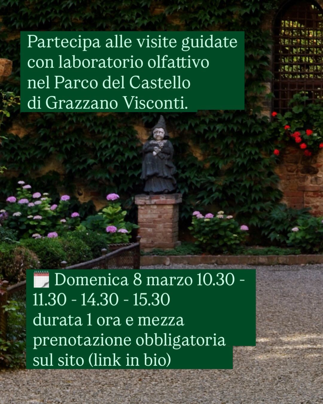 Domenica 8 marzo, in occasione della Festa della Donna, è in programma la visita speciale "Le Signore del Parco – percorso tra essenze e storie femminili", un itinerario tra alberi secolari e memorie al femminile per riscoprire le figure che hanno attraversato e abitato questo luogo.