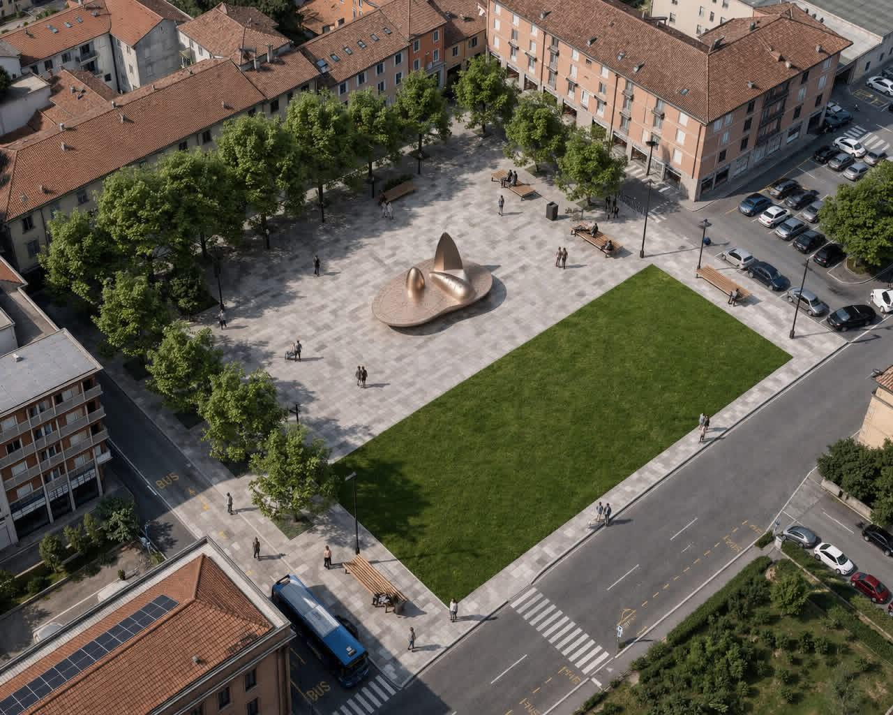 «Si tratta di un render, e non di un progetto, generato dall’intelligenza artificiale seguendo linee guida costruite su un capture di Google Maps. In mezzo alla porzione pavimentata c’è un monumento speciale, ovvero un modello metallico a grande scala del Fegato etrusco di Piacenza, il pezzo unico al mondo conservato a Palazzo Farnese che merita di diventare UN simbolo e creare un collegamento fisico con il palazzo e le sue preziose collezioni. Una piazza minimal, che lascia il palcoscenico al Farnese, una platea che dirige gli sguardi verso lo spettacolo storico», racconta Bergonzi su Facebook.
