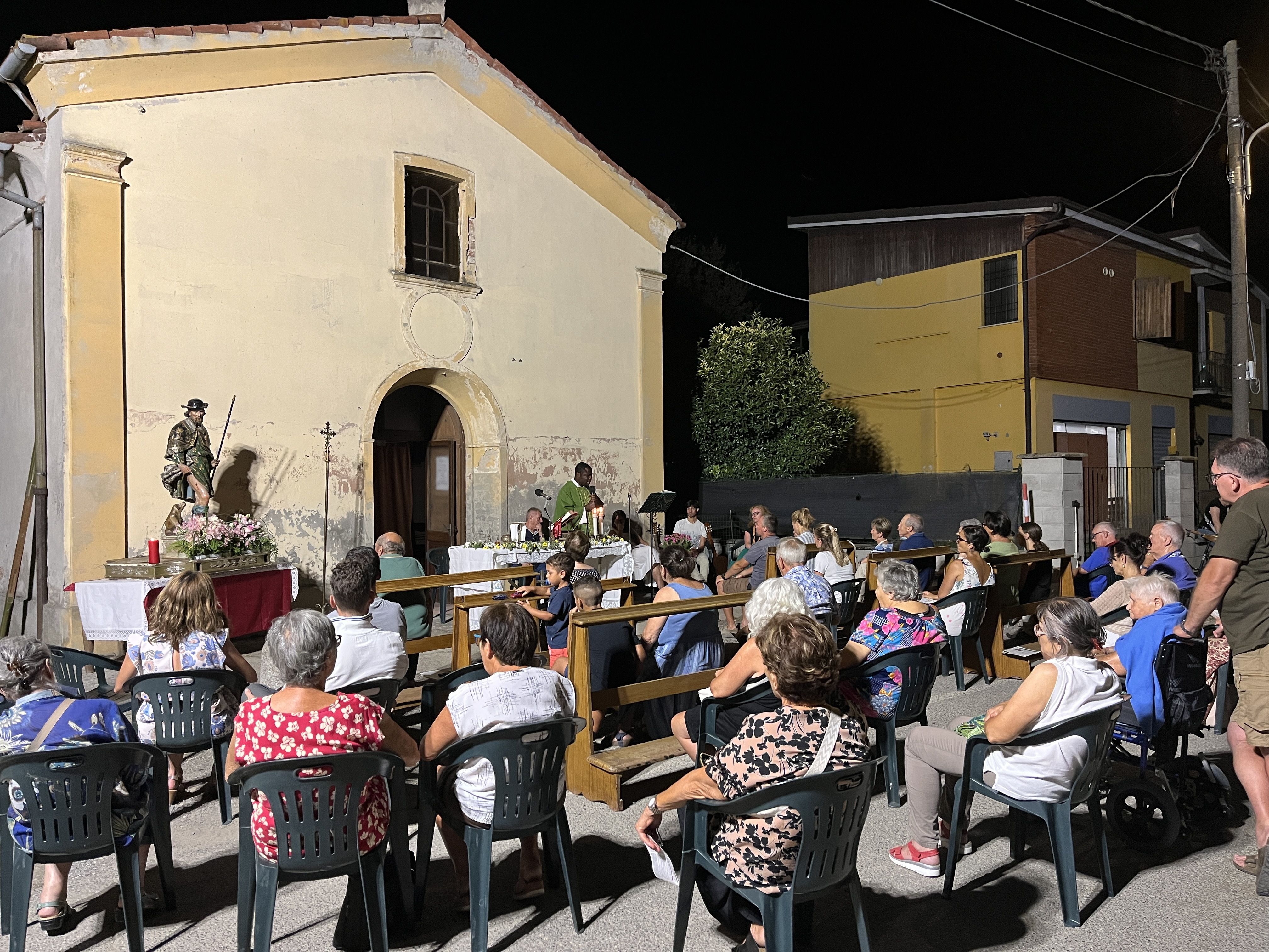 «I simboli vanno difesi», afferma Maria Angela Sidoli, che sabato ha coinvolto i concittadini accanto all’oratorio di san Rocco a Borgonovo, frazione di Monticelli. Una cinquantina di persone hanno partecipato alla messa guidata da don Roger Awoussa Ankou, con il supporto dei volontari di Protezione Civile e dei Carabinieri. Dopo la celebrazione, la statua lignea di san Rocco è stata portata in processione.