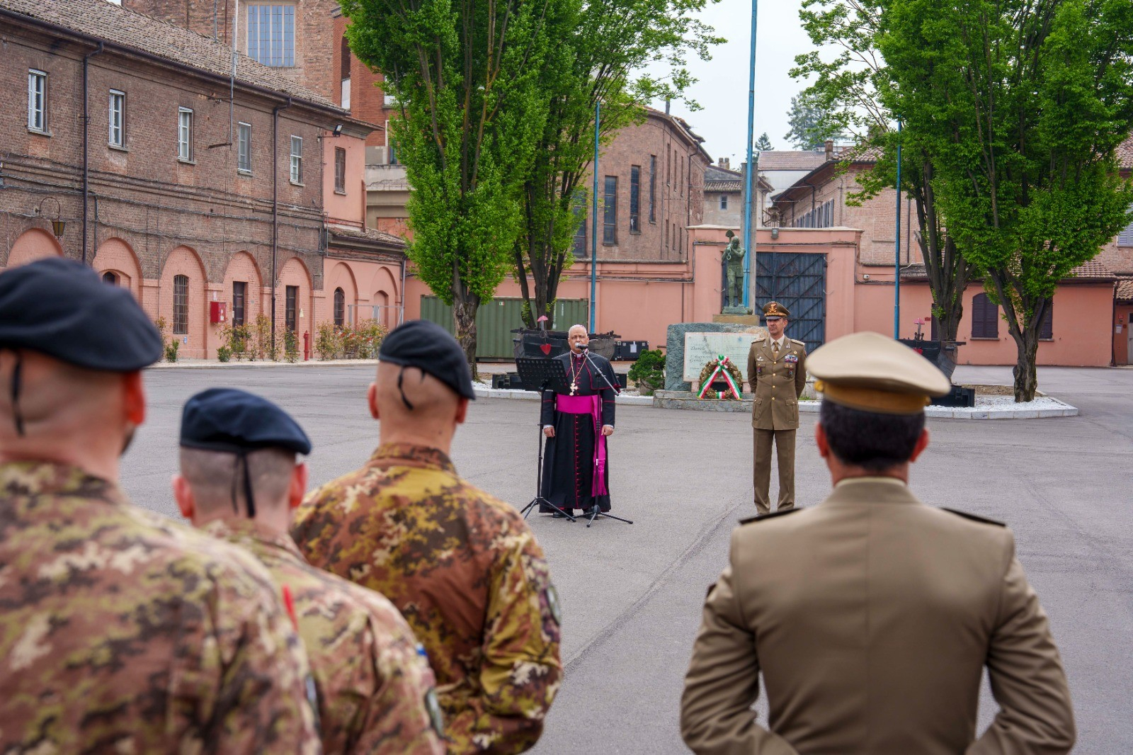 Dopo essere stato accolto dal Comandante del Reparto, Colonnello Daniele Paradiso, e dal 1° Cappellano Militare Capo, don Massimo Gelmi, Monsignor Saba ha presieduto la cerimonia di consacrazione della cappella di Reggimento, durante la quale sono state deposte, sotto l’altare, le reliquie di San Giovanni XXIII, Santo Patrono dell’Esercito Italiano e di San Giovanni Battista Scalabrini, Vescovo di Piacenza e fondatore della Congregazione dei Missionari di San Carlo.