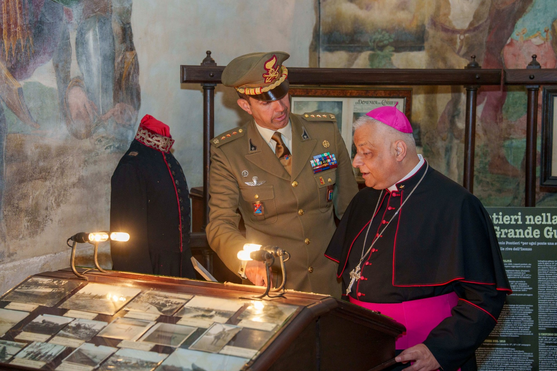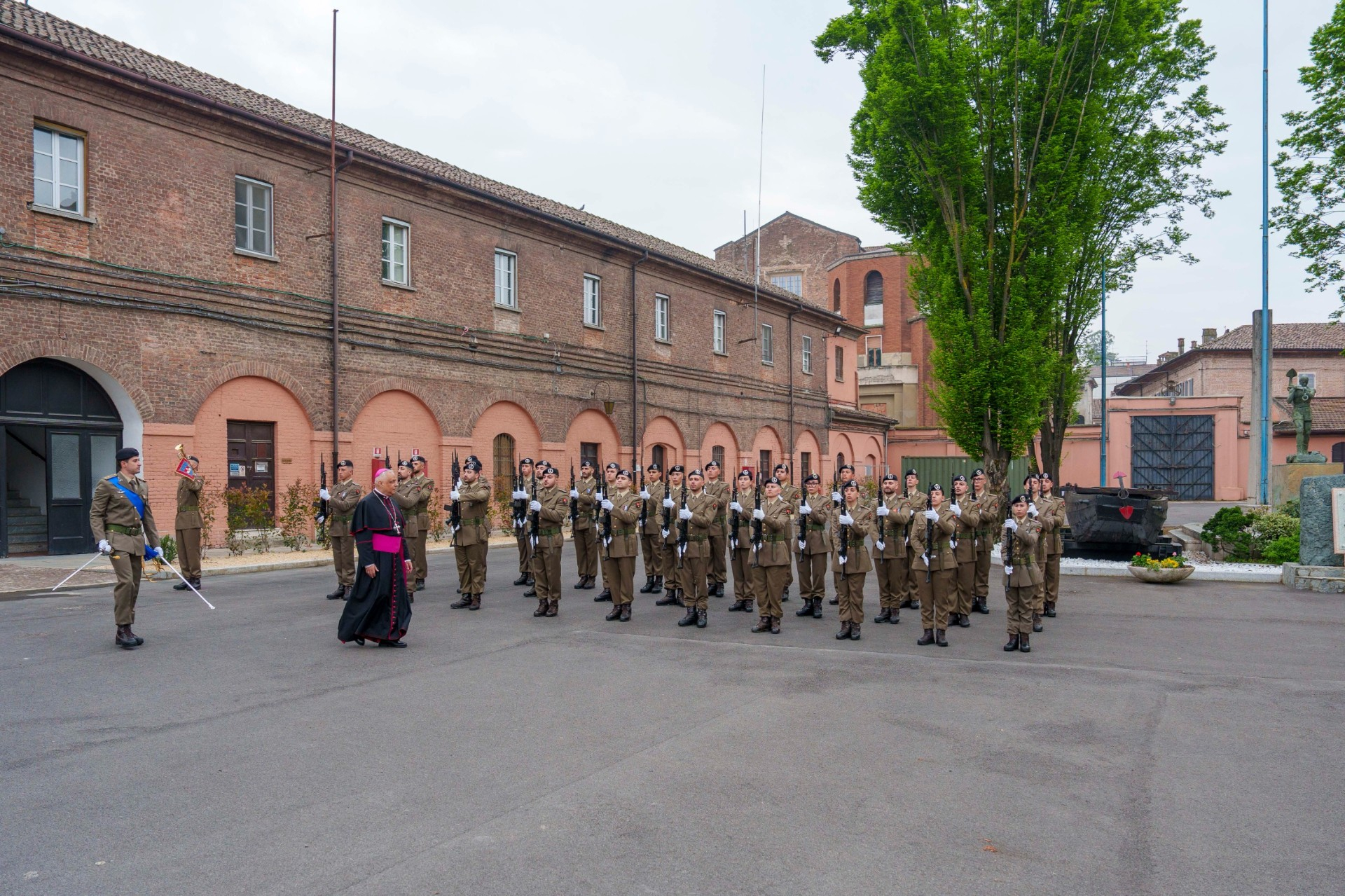Presente alla cerimonia di l’arcivescovo ordinario militare, Monsignor Gian Franco Saba, per una mattinata speciale, iniziata con la consacrazione della cappella di Reggimento e proseguita con lo svelamento delle targhe, il cortile dell'alzabandiera dedicato alla patrona Santa Barbara, quello esterno al Caporal Maggiore Donato Briscese, Medaglia d’Oro al Valor Militare, che ha perso la vita sul fronte russo nel febbraio 1942, e il chiostro al Tenente Gian Guglielmo Rebora, Medaglia d’Argento al Valor Militare, ucciso durante il primo conflitto mondiale.