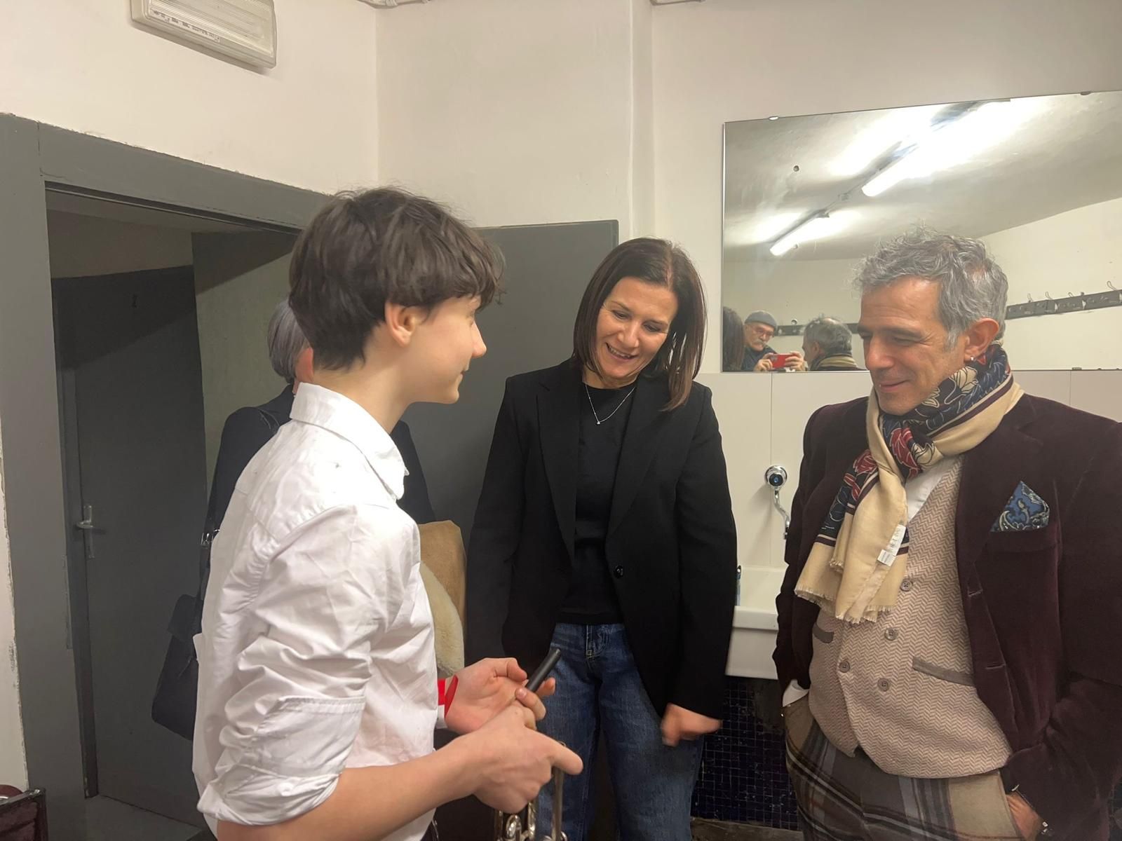 Il concerto, promosso dalla Fondazione Donatella Ronconi ed Enrica Prati – da tempo tra i principali sostenitori del progetto dell'Orchestra Cinquequarti– ha infatti visto protagonisti due musicisti di rilievo internazionale, Paolo Fresu e Pierpaolo Vacca. Ma prima che le luci della sala si accendessero, nel camerino si è svolto un incontro speciale per uno dei giovani musicisti dell'orchestra fortemente voluta dalla dirigente scolastica Simona Favari.