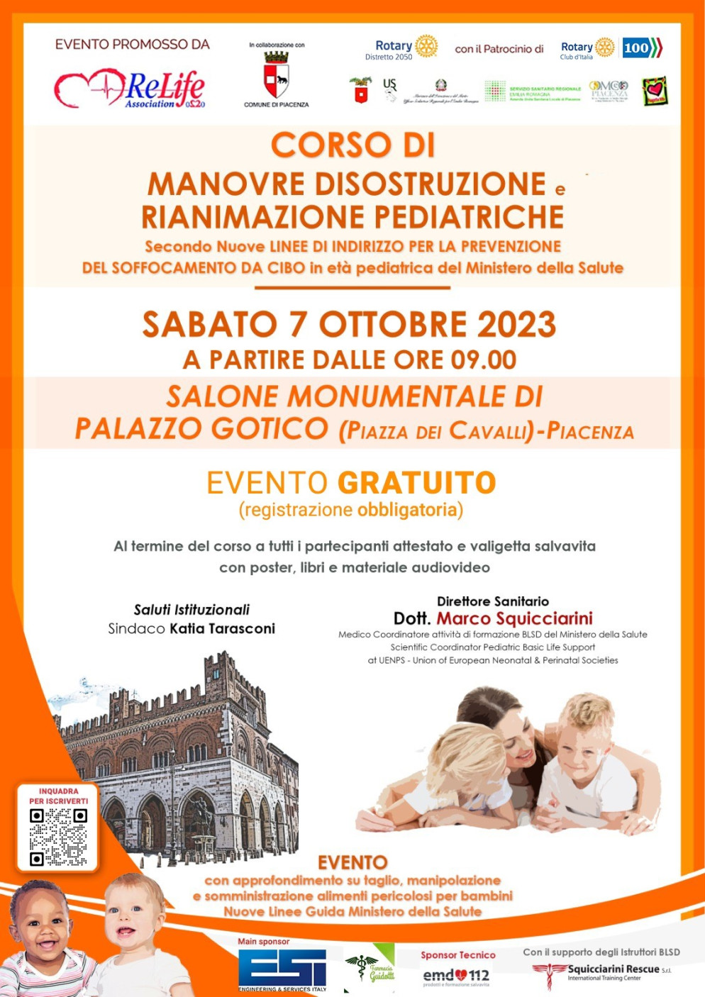 Bastano pochi secondi per rischiare di soffocare. Un pezzo di hot dog, un acino di uva, un bocconcino di mozzarella, una caramella o un piccolo oggetto apparentemente innocuo, possono generare incidenti spesso molto gravi. Ogni anno in Italia 50 bambini perdono la vita per soffocamento da corpo estraneo. In molti casi i piccoli muoiono perché chi gli è accanto non sa come aiutarli. A Piacenza approda il progetto nazionale “Manovre salvavita”. Da oltre 20 anni Marco Squicciarini, medico e istruttore BLSD accreditato 118, diffonde le tecniche di disostruzione pediatriche in tutto il territorio nazionale, per insegnare a genitori e docenti a prevenire, riconoscere e intervenire in caso di soffocamento: il 6-7 ottobre Squicciarini porta una due giorni di corsi gratuiti con il supporto di istruttori BLSD del “Centro di formazione Relife2020 Association” (organizzatore dell’evento) diretto da Cristina Bolzoni e dagli istruttori della Rete Nazionale “Squicciarini Rescue” provenienti da ogni regione d’Italia. “Il 13 settembre in Campidoglio e a ottobre a Piacenza si porterà avanti un progetto senza precedenti in Italia, con il supporto di sindaci, assessori, personale scolastico” – sottolineano Squicciarini e Bolzoni.