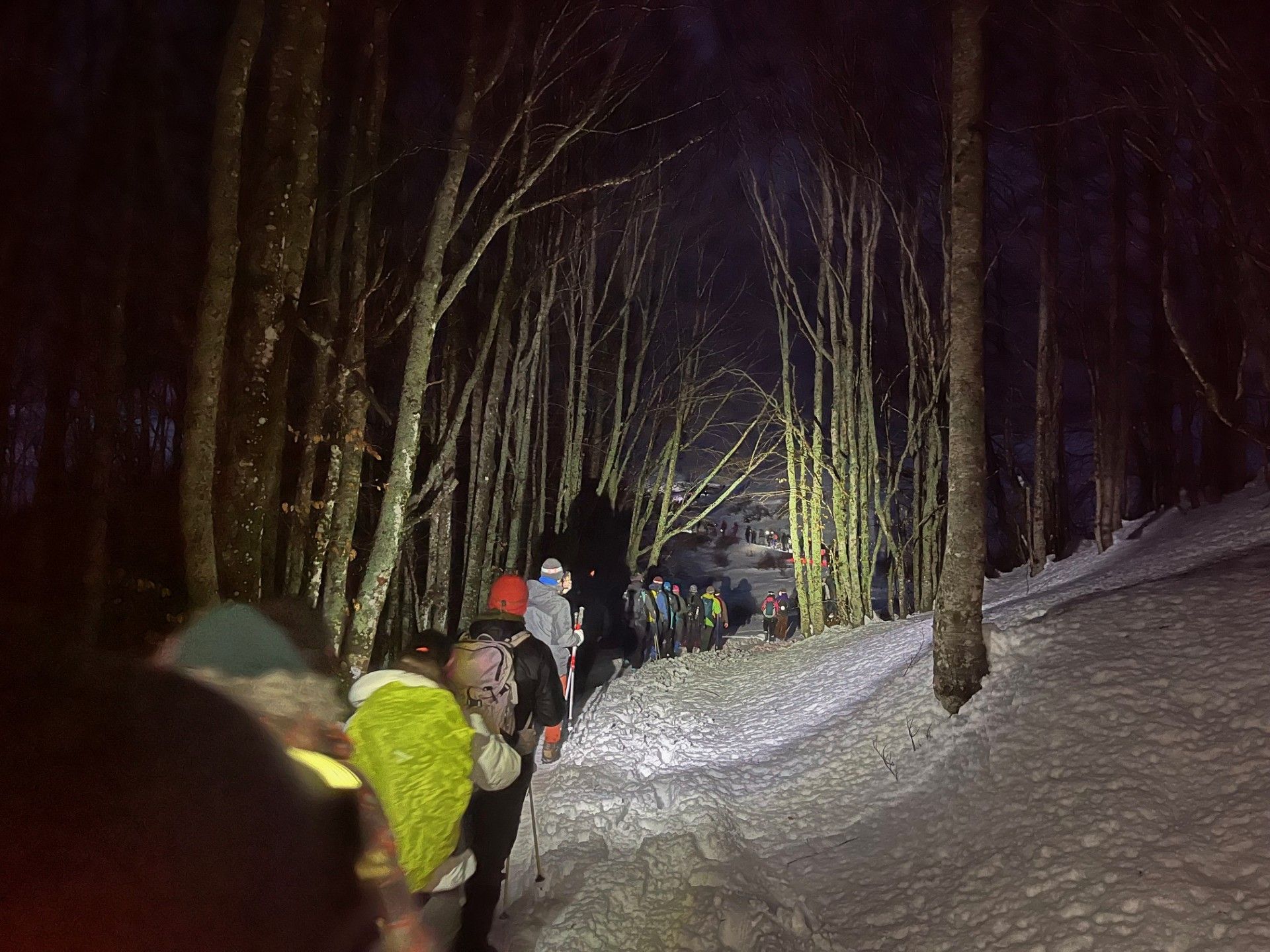 Il corteo di luci che dal rifugio Gaep è arrivato fino alla vetta del Crociglia - © Libertà/Marco Vincenti