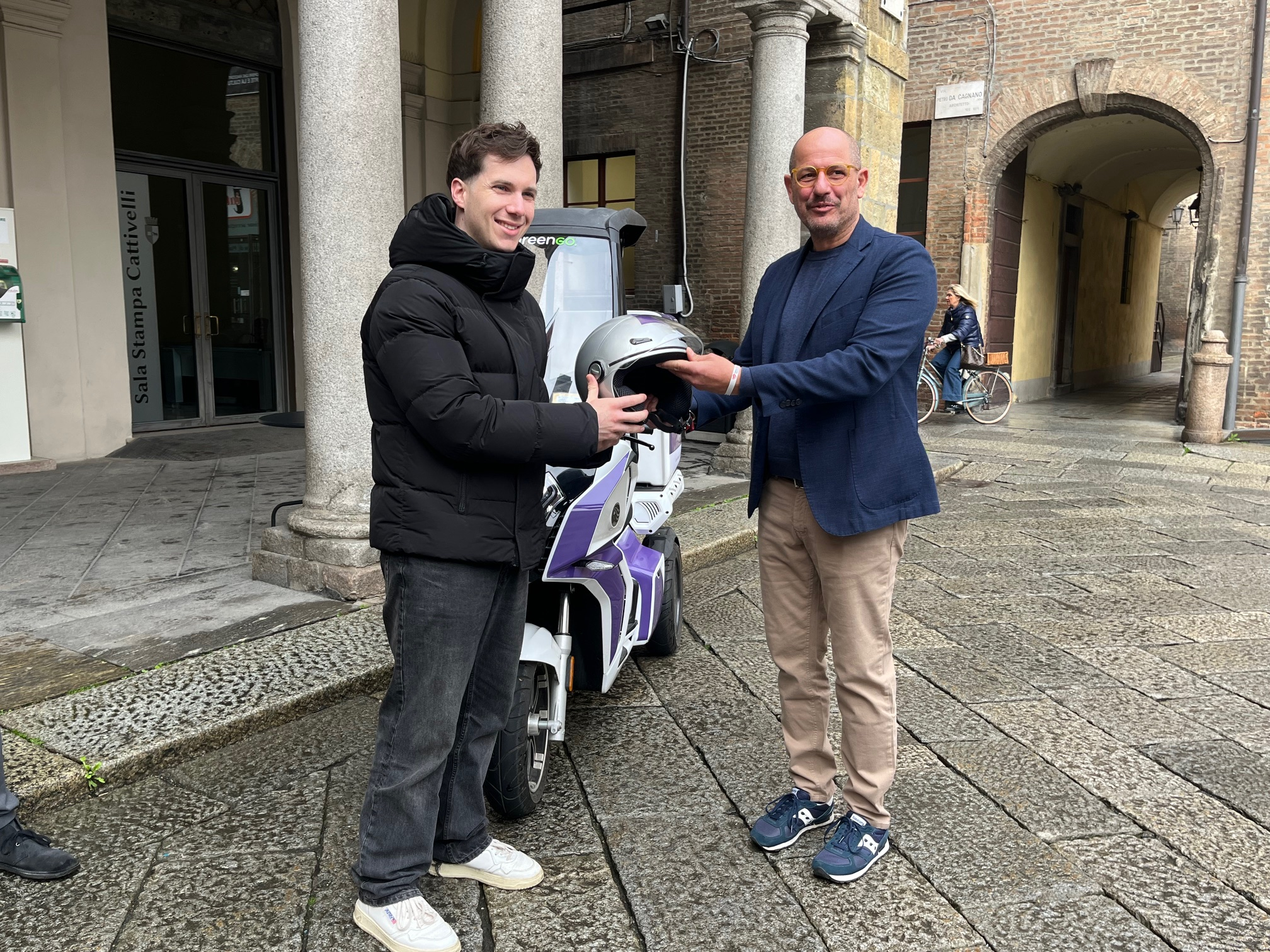 «Guardiamoci negli occhi» è il nome della campagna lanciata dall’Osservatorio regionale per l’educazione alla sicurezza stradale a cui anche il Comune di Piacenza ha aderito. A presentarla, insieme all’assessore Mario Dadati e a Fiorenzo Zani dell’Ufficio scolastico territoriale, sono stati il presidente dell’Osservatorio Marco Pollastri e il testimonial Luca Bellei che dopo la conferenza è partito in sella a uno scooter elettrico per intervistare i piacentini sul tema della sicurezza stradale.