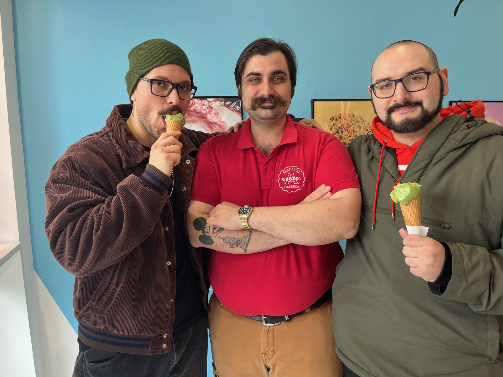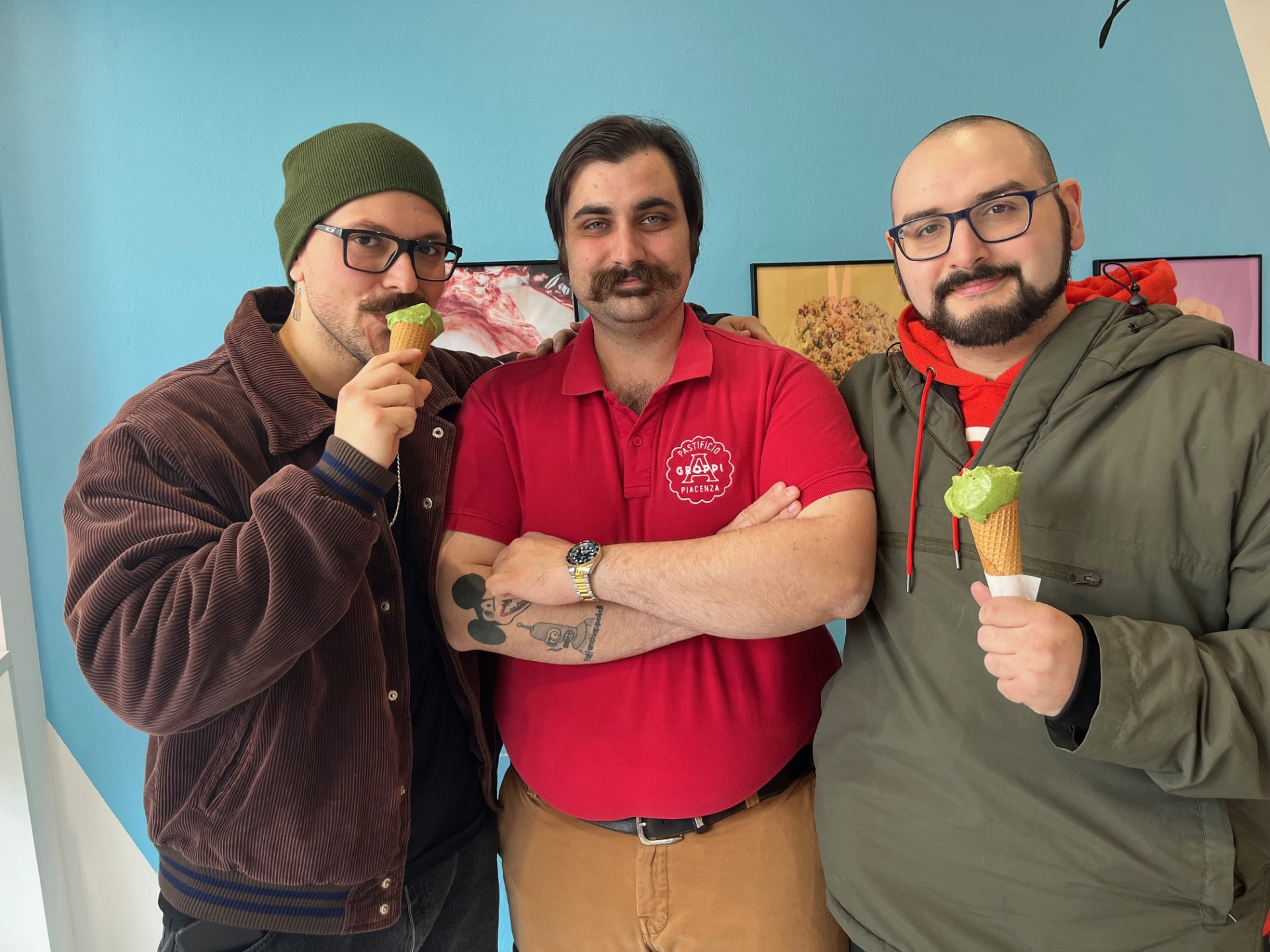 «Già il colore mi aveva conquistato - ha commentato un altro assaggiatore -, anche al palato delizioso. Il gusto dei tortelli piacentini non tradisce mai». «È buonissimo, incredibile davvero - il commento di uno di loro -. Perfetta la combinazione tra dolce e salato e fantastica l'idea di guarnirlo con un goccio di olio d'oliva e grana quanto basta». D'accordo con lui, un altro giovane piacentino: «Spettacolare, dovrebbero proporlo sempre» le sue parole. Chissà quindi che il matrimonio tra pastificio Groppi e gelateria Magritte non dia alla luce altre innovazioni gastronomiche e, magari, trasformare in gelato anche il ripieno degli anolini o il sapore dei pisarei e fasò: «Fatelo, adesso» il consiglio di clienti ed amici.