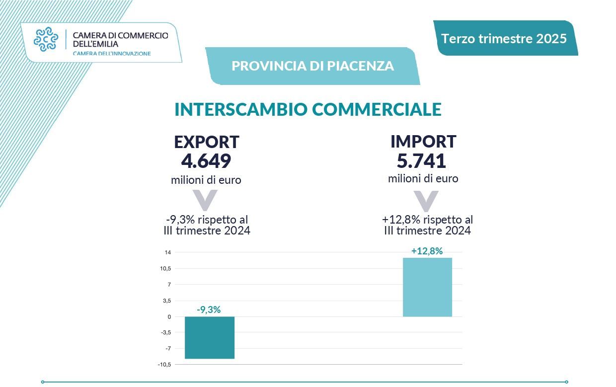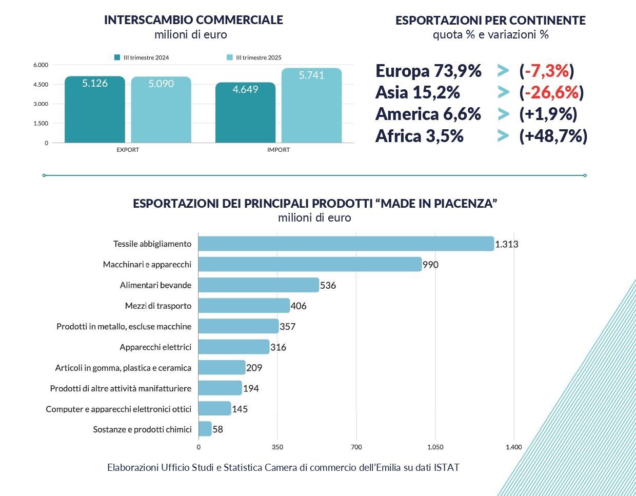 Export piacentino in calo: -9,3% al terzo trimestre 2025