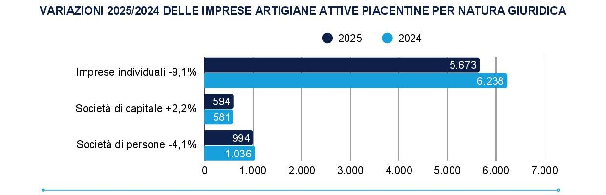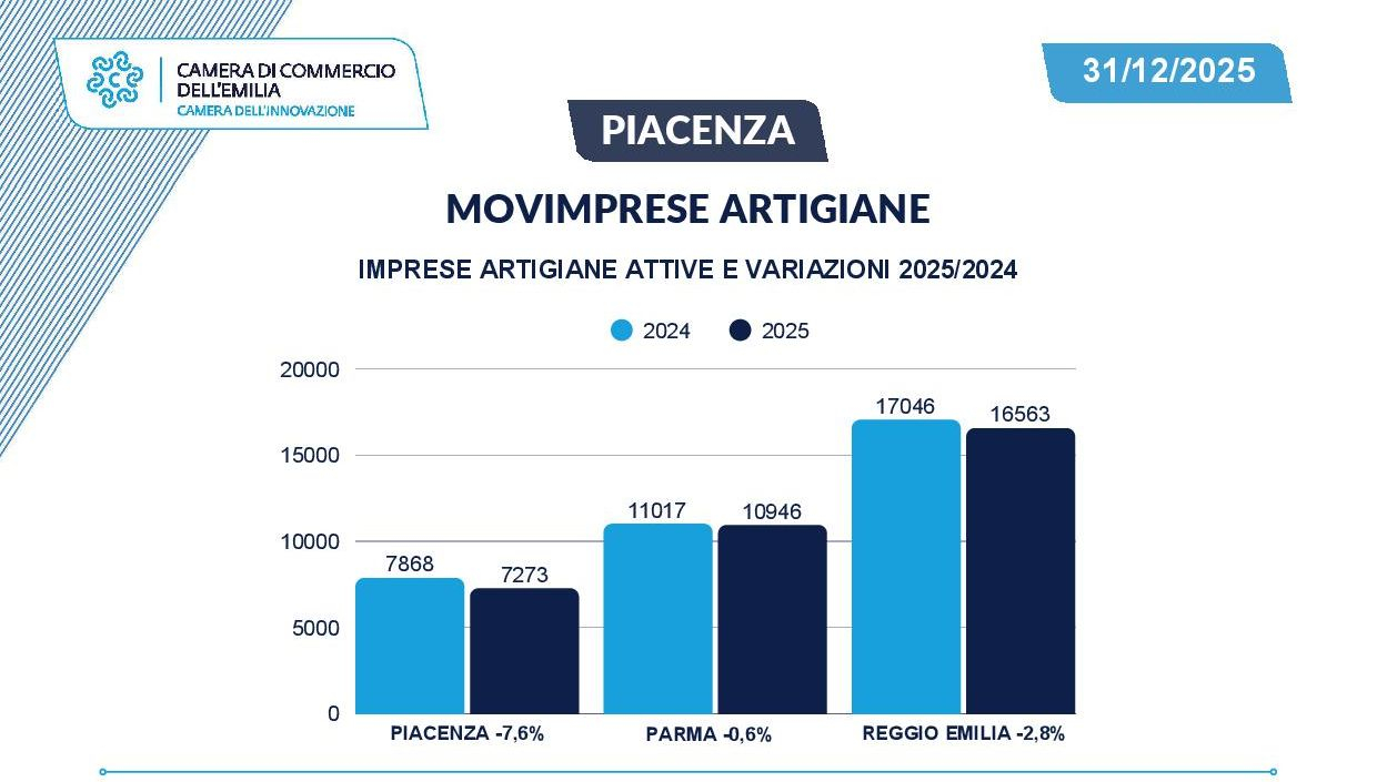 Imprese artigiane a Piacenza, calo marcato nel 2025: -7,6%