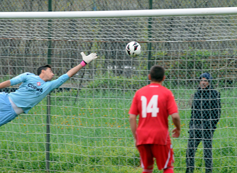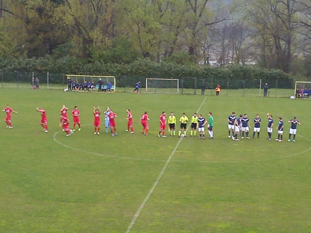 E’ Pedrazzoli, al 35′, con un colpo di testa perfetto a portare in vantaggio un Rolo brillante e per nulla impaurito dalla capolista che stenta a costruire occasioni degne di nota